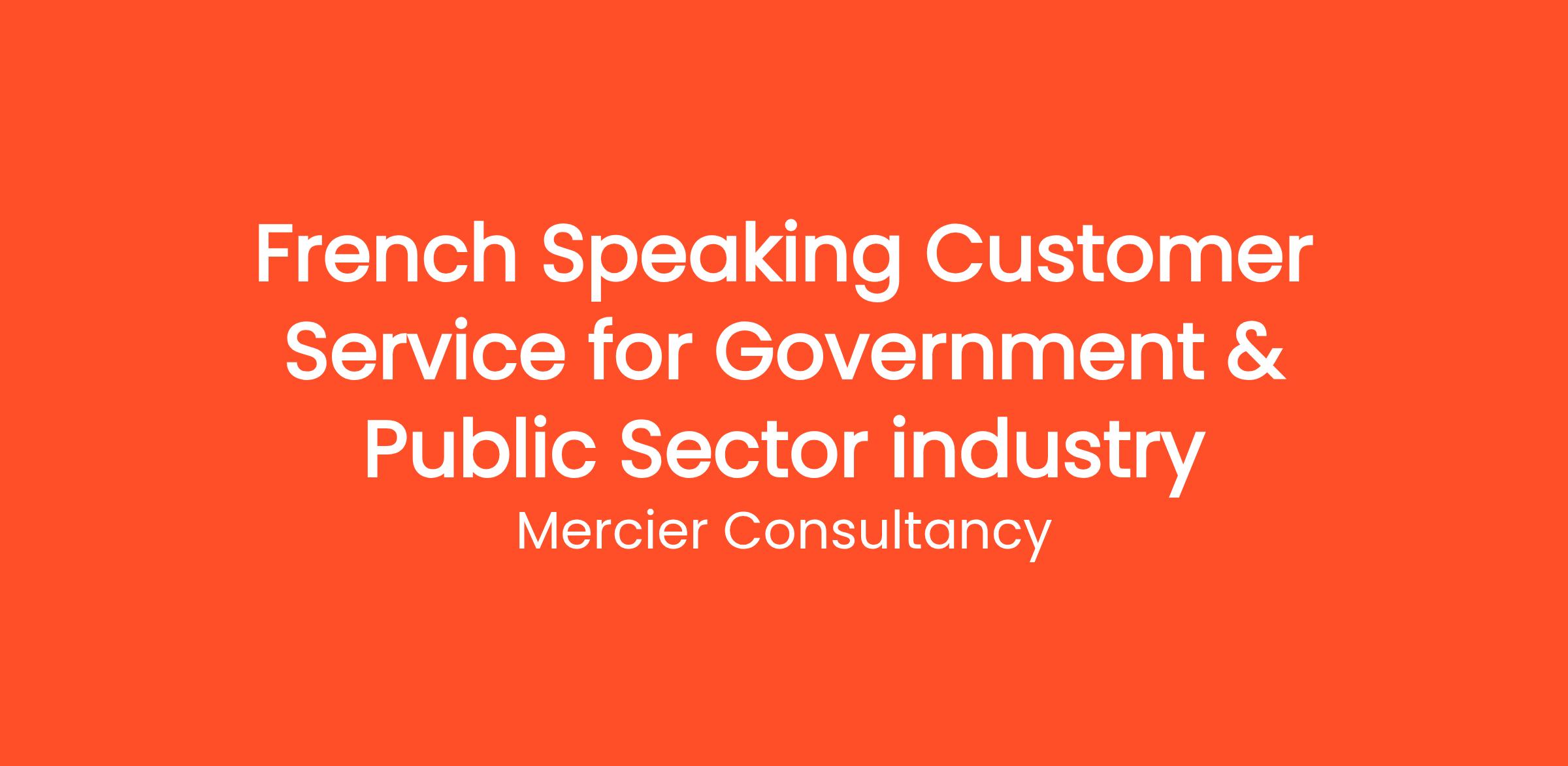 Mercier Consultancy is seeking a dedicated French Speaking Customer Service Representative to join our Government & Public Sector team. In this important role, you will provide exceptional support to our French-speaking clients, assisting them with inquiries related to government services and public sector initiatives.