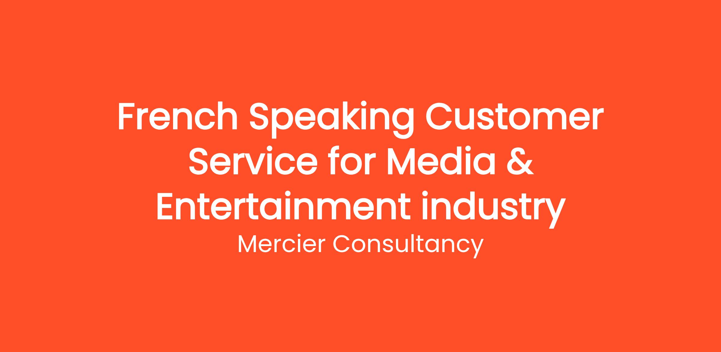 Mercier Consultancy is excited to announce a vacancy for a French Speaking Customer Service Representative in the Media & Entertainment industry. In this dynamic role, you will be responsible for providing outstanding support to our French-speaking clients, assisting them with inquiries related to our entertainment services and products.
