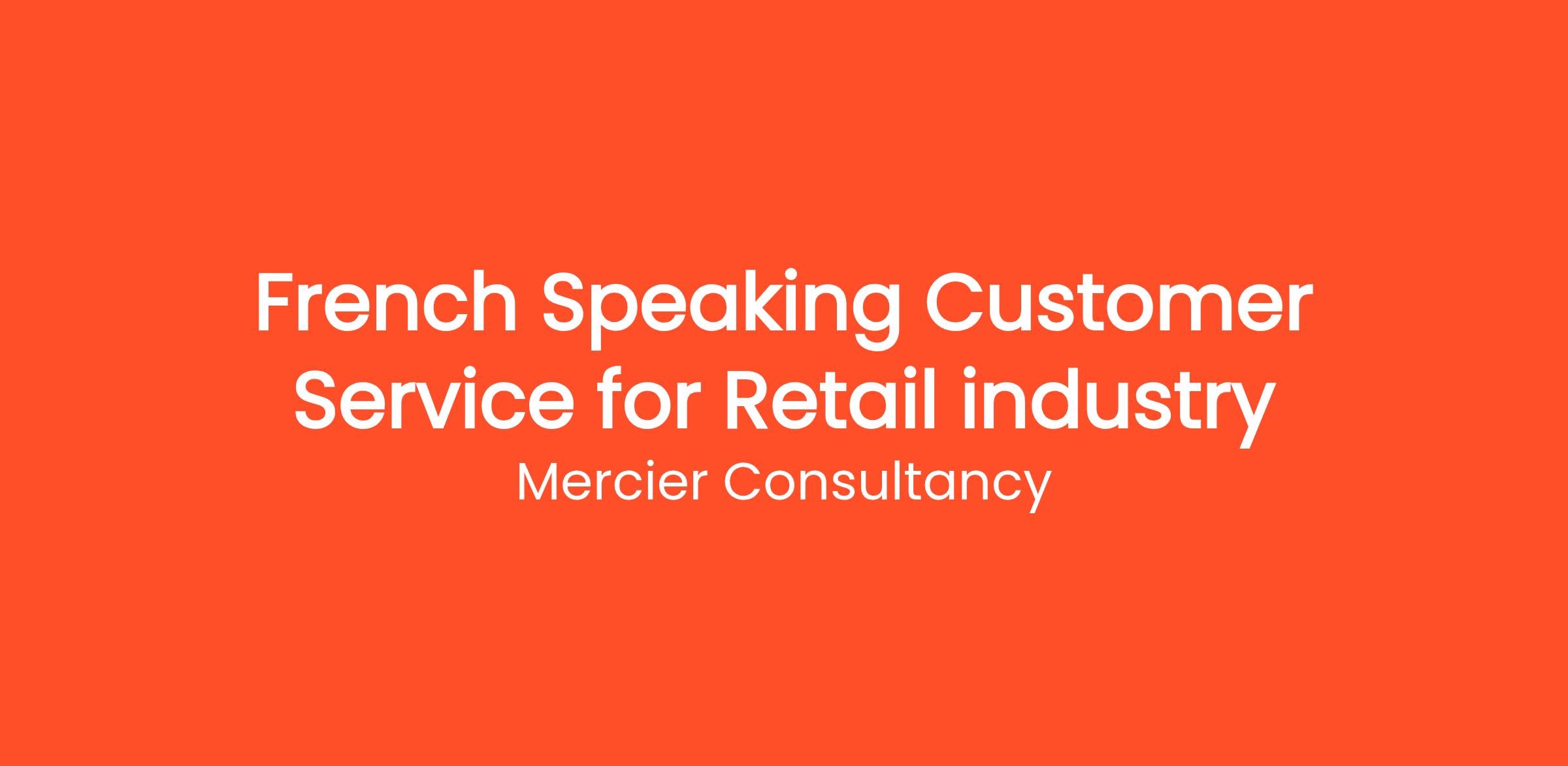 Mercier Consultancy is seeking an enthusiastic French Speaking Customer Service Representative to join our team in the Retail industry. In this customer-focused role, you will provide top-tier support to our French-speaking clients, addressing their inquiries and assisting them with their shopping experience.