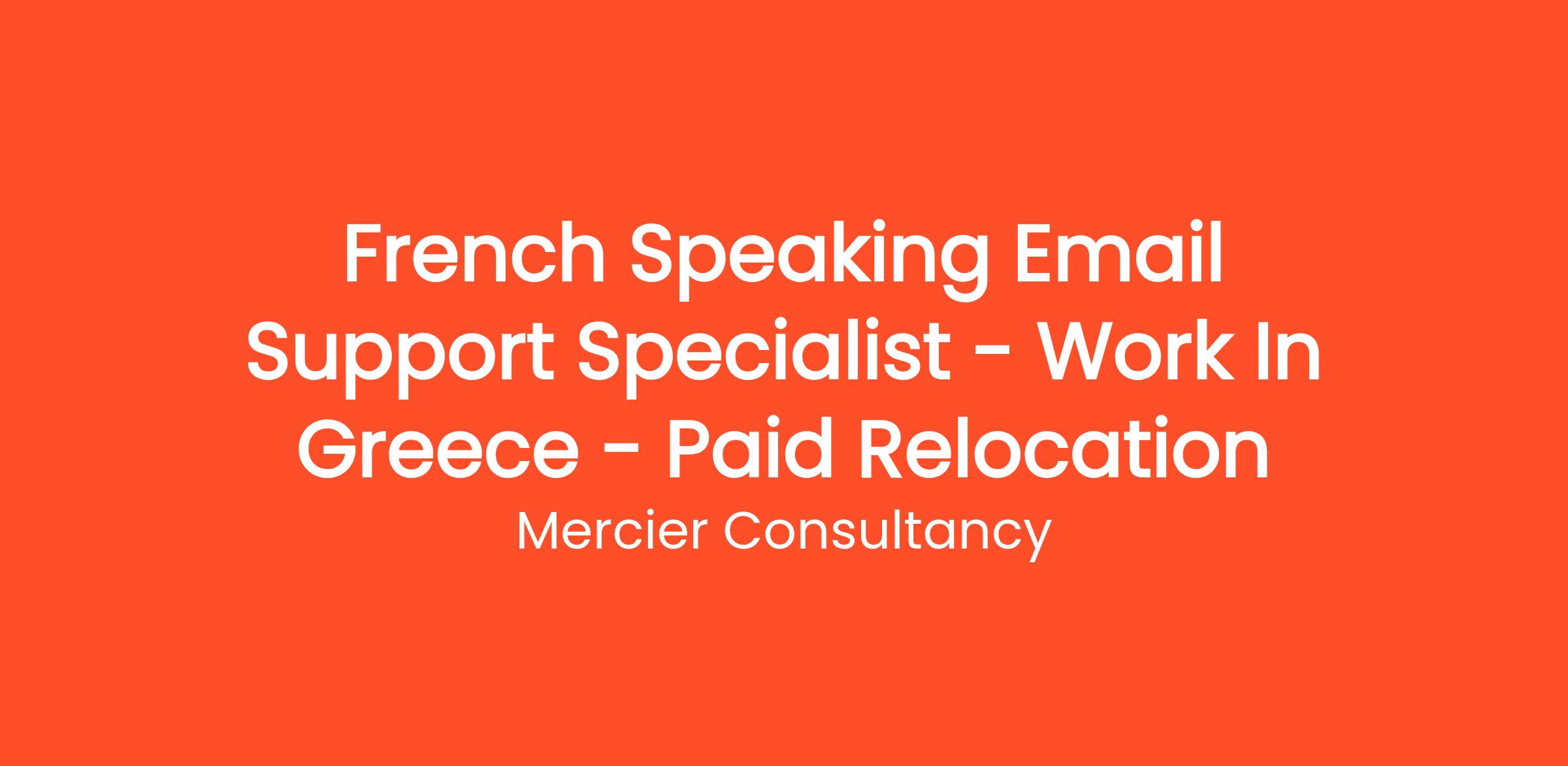 Mercier Consultancy is thrilled to announce an opening for a French Speaking Email Support Specialist to join our dynamic team! In this pivotal role, you will deliver outstanding email support to our French-speaking clientele, ensuring their queries are handled with professionalism and care.