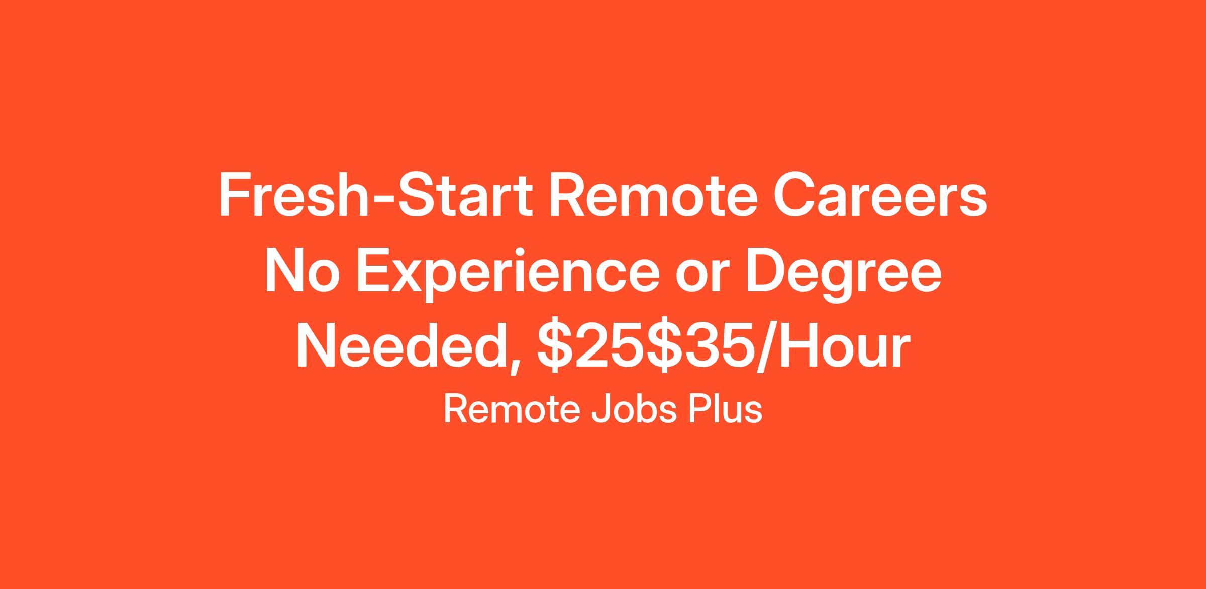 Fresh-Start Remote Careers No Experience or Degree Needed, $25$35/Hour