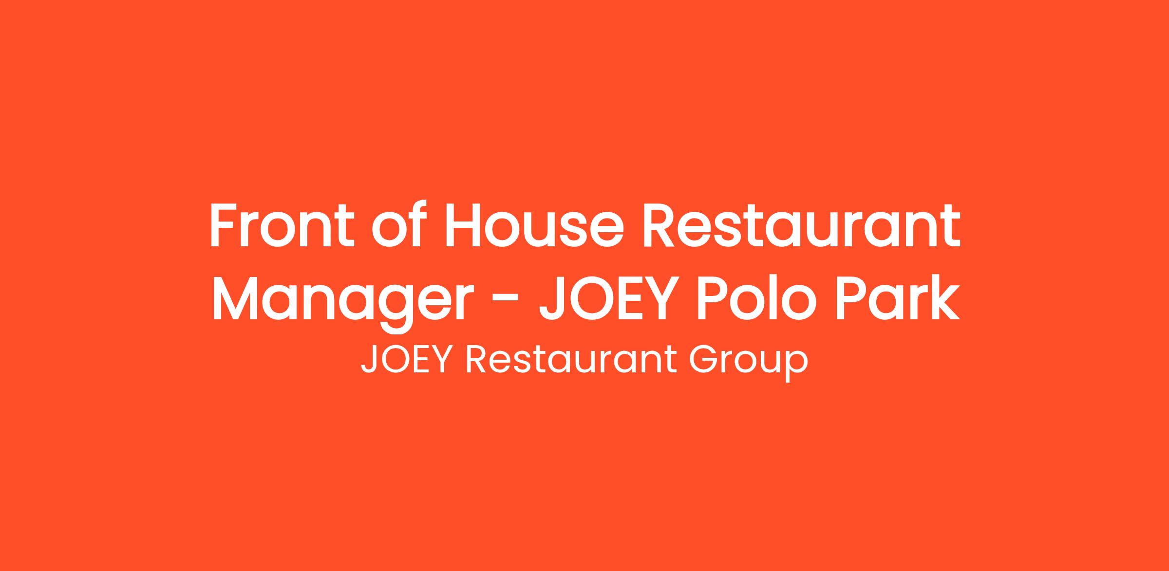 Front of House Restaurant Manager - JOEY Polo Park