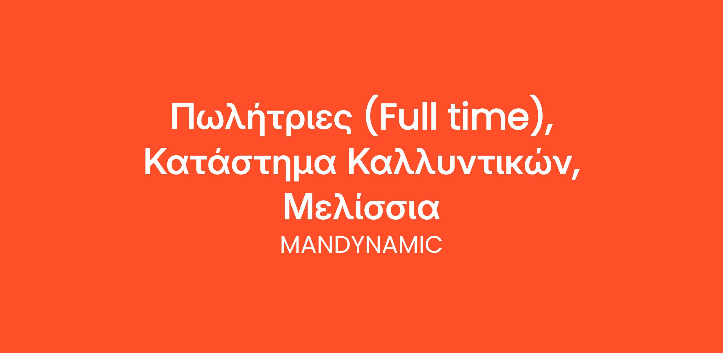 Η MANDYNAMIC αναζητά Πωλήτριες εκ μέρους μεγάλης αλυσίδας καλλυντικών για το νέο κατάστημά της στο Μελίσσια!
