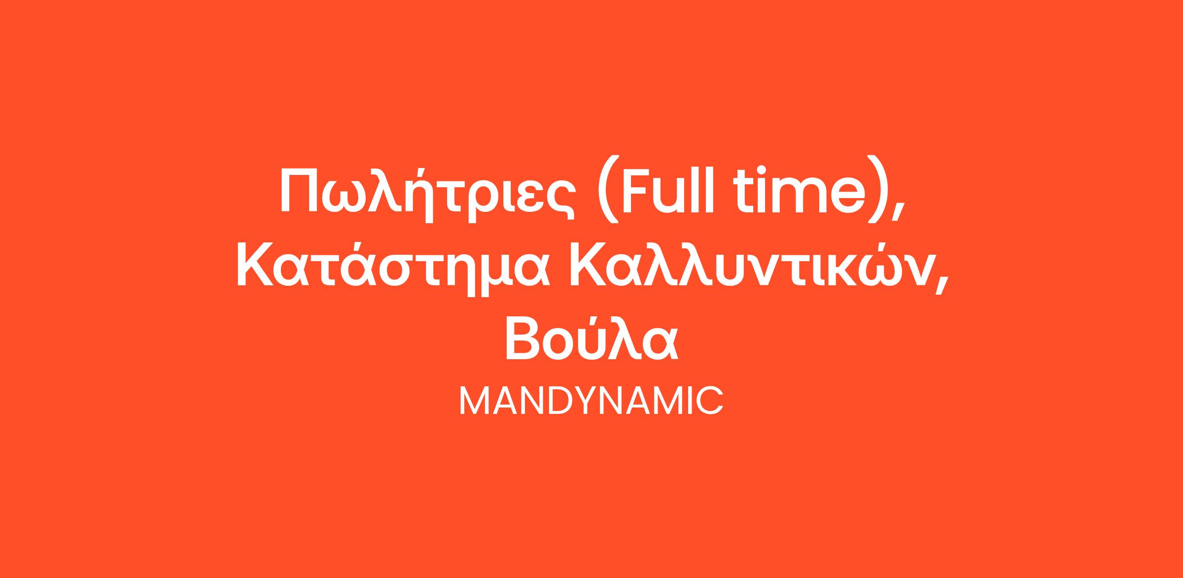 Η MANDYNAMIC αναζητά πωλήτριες εκ μέρους εταιρίας με αλυσίδα καταστημάτων καλλυντικών στην Βούλα.