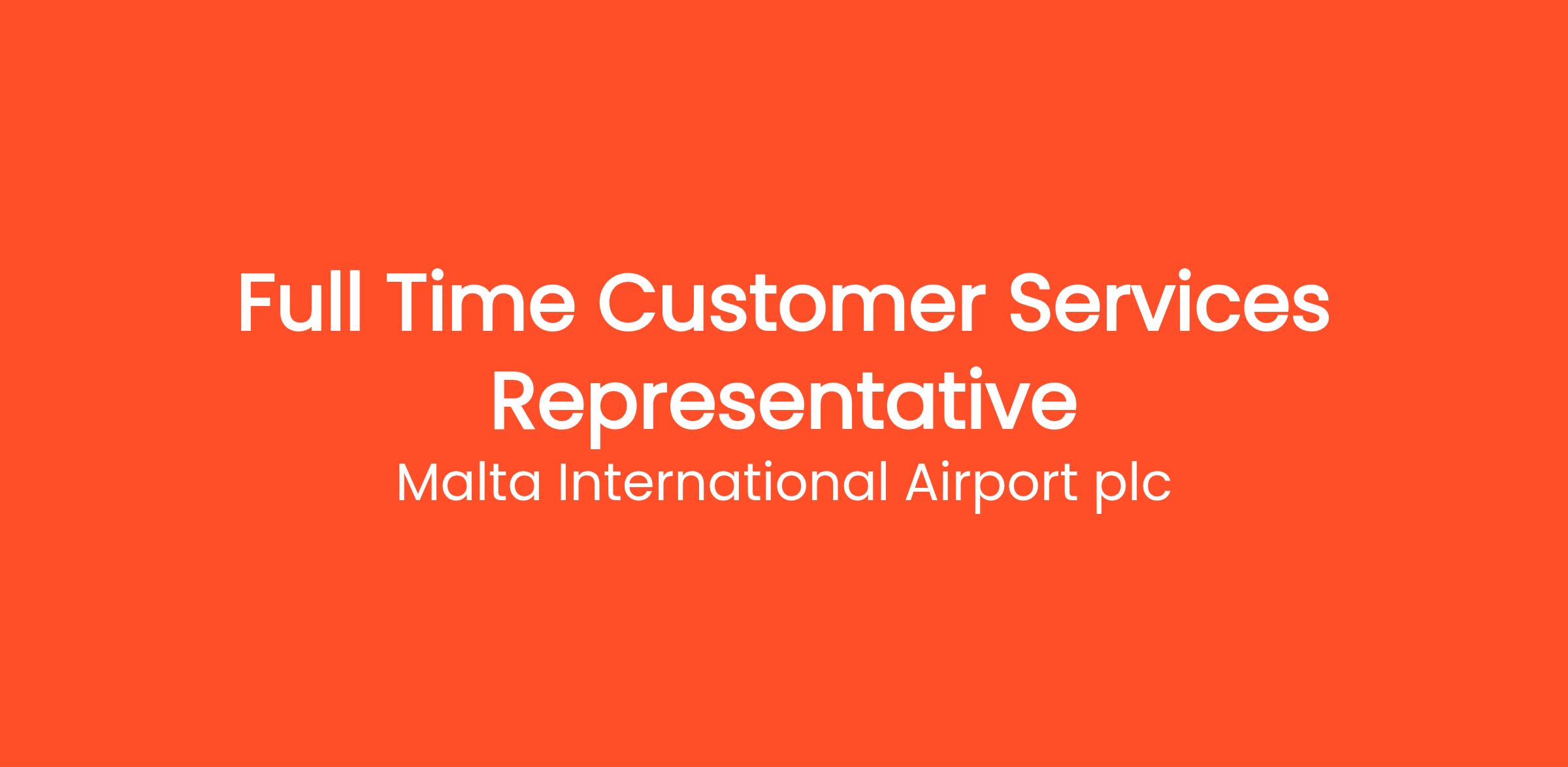 Malta International Airport plc is looking for dynamic individuals who are passionate about working with people within an Airport environment, and are willing to continuously learn, develop, and be part of a high-performance culture. This vacancy has arisen within the Customer Services Department on a full-time basis.