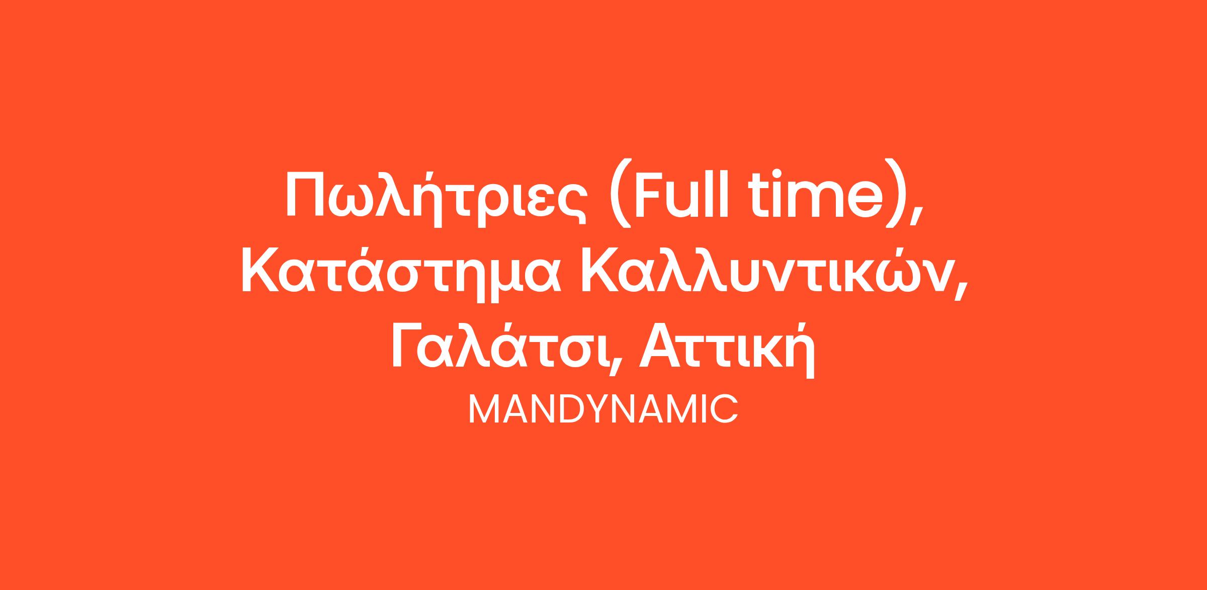 Η MANDYNAMIC αναζητά Πωλήτριες εκ μέρους μεγάλης αλυσίδας καλλυντικών για το νέο κατάστημά της στο Γαλάτσι.