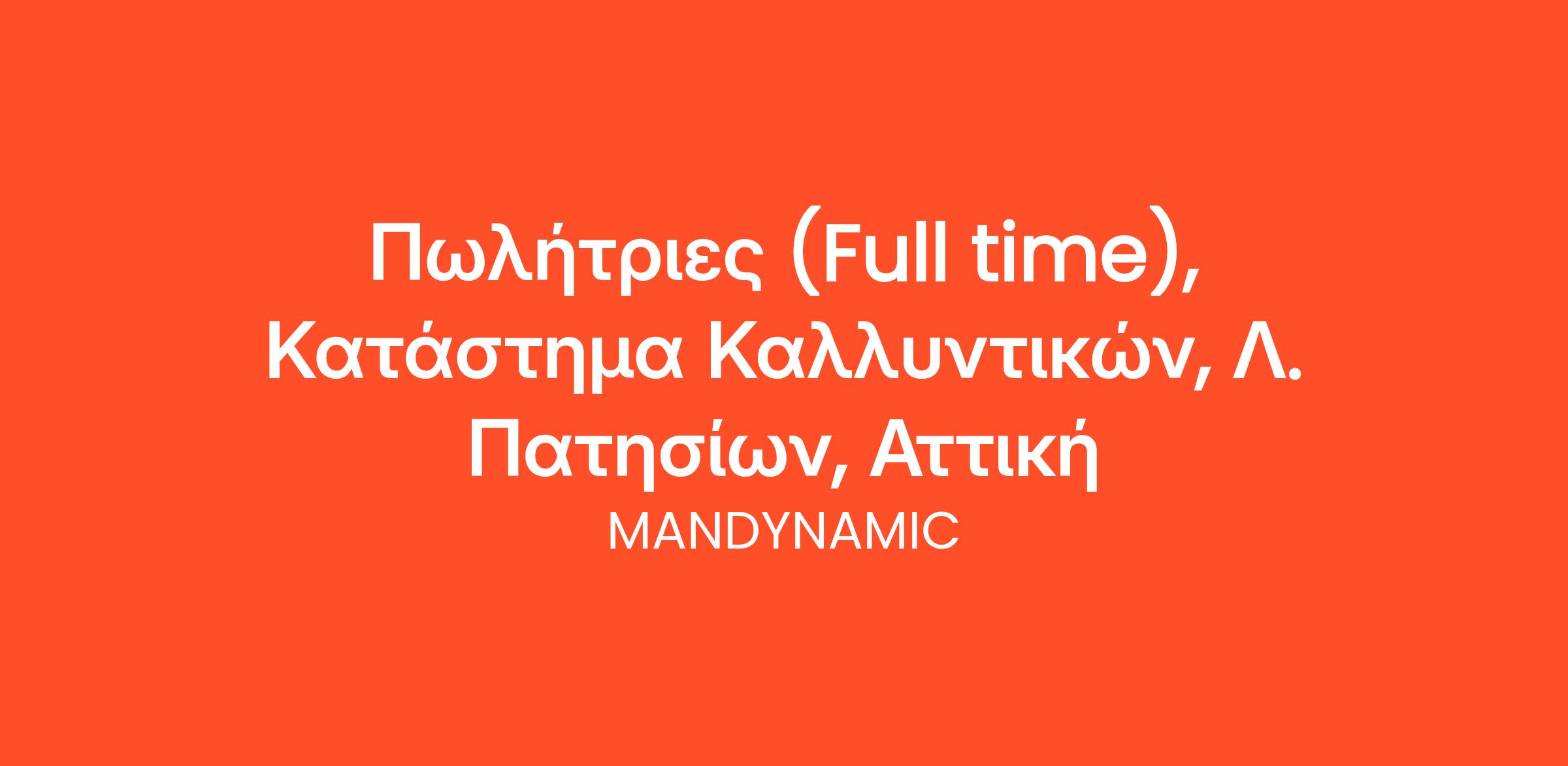 Η MANDYNAMIC αναζητά πωλήτριες εκ μέρους εταιρίας με αλυσίδα καταστημάτων καλλυντικών στην Λ. Πατησίων.