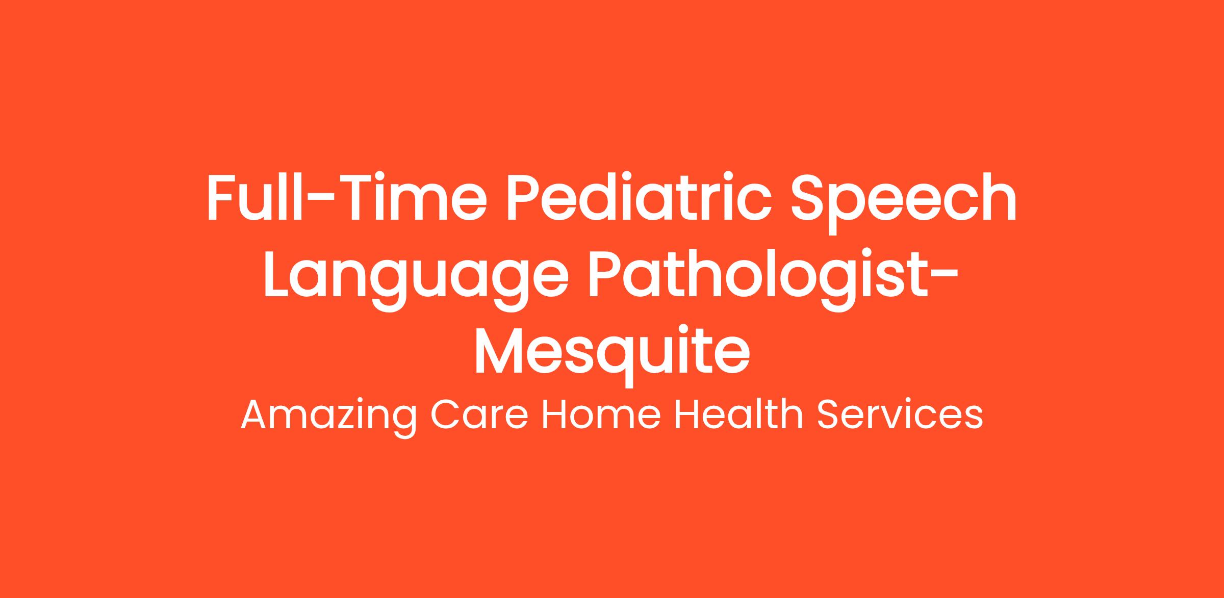 Speech Language Pathologist – Pediatric Home Health | Mesquite | Full-Time