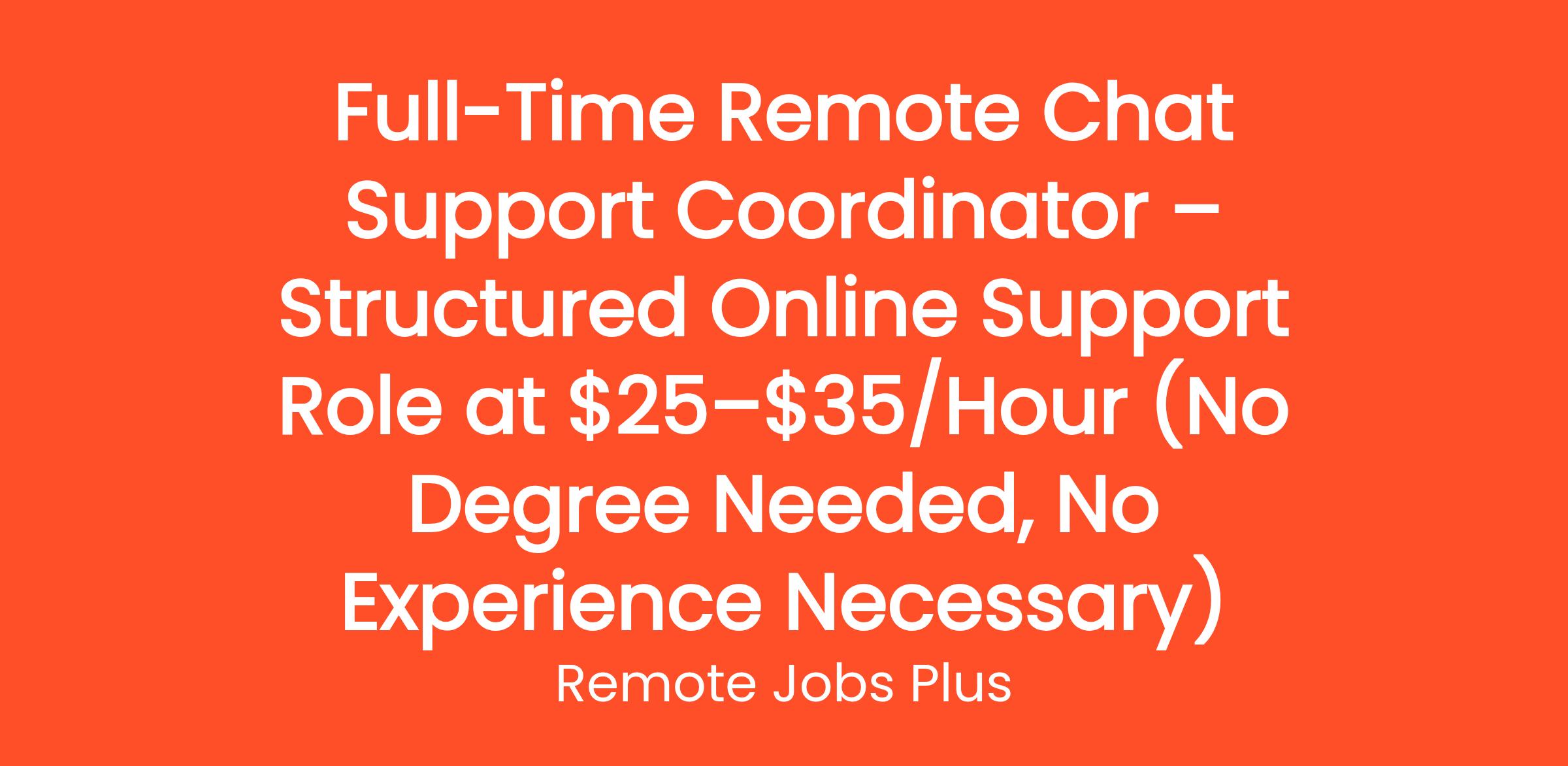 We are seeking a Remote Chat Support professional to join our team. As a Remote Chat Support professional, you will be responsible for providing customer support via chat. This is a full-time remote position, and we offer competitive pay of $25-$35 an hour.