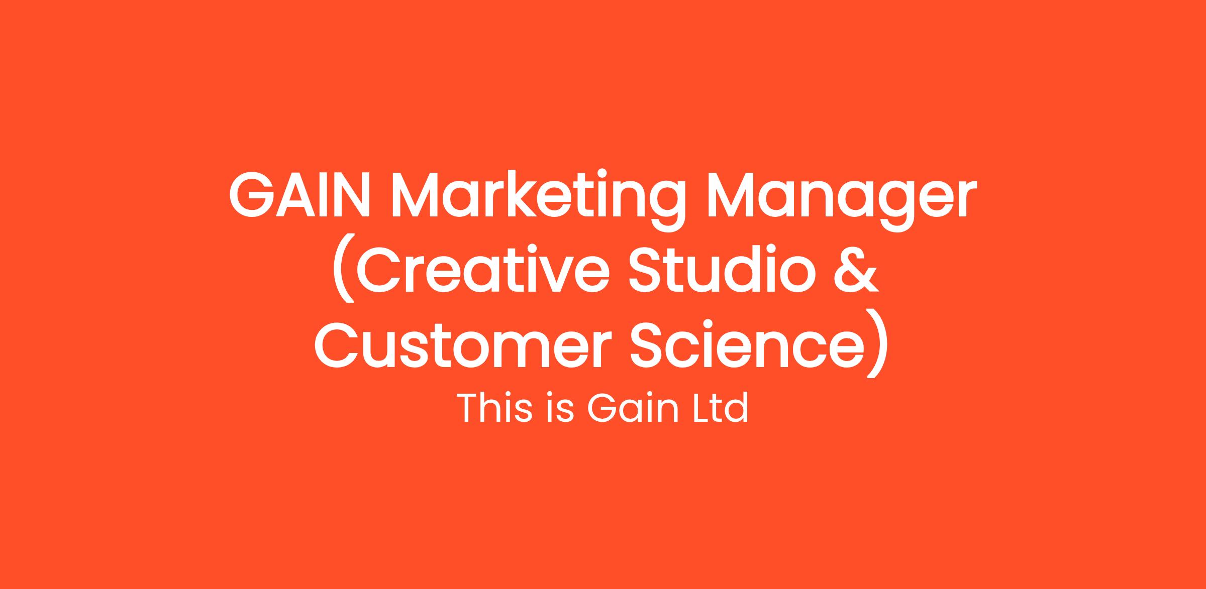 GAIN Marketing Manager (Creative Studio & Customer Science)