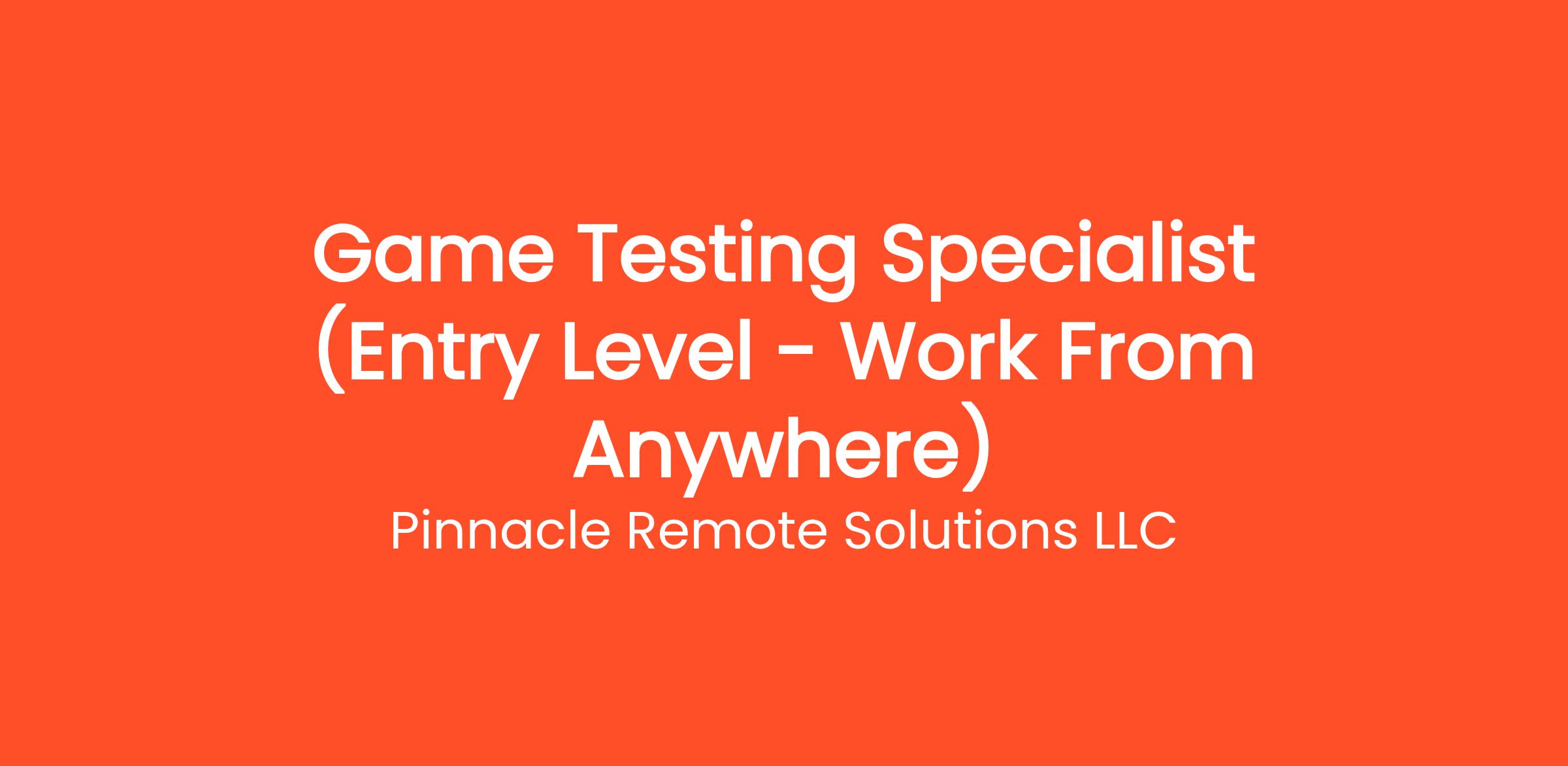 Are you highly organized and looking for the perfect entry-level opportunity? Pinnacle Remote Solutions LLC is currently seeking a Game Testing Specialist (Entry Level - Work From Anywhere) to join our rapidly growing remote team. If you've been searching for remote jobs no degree or overnight remote jobs, this is the exact role you've been looking for. No degree required and no prior experience is necessary—we provide comprehensive training to all new hires! You will be responsible for critical daily operations, managing secure platforms, and contributing to our vibrant digital culture.