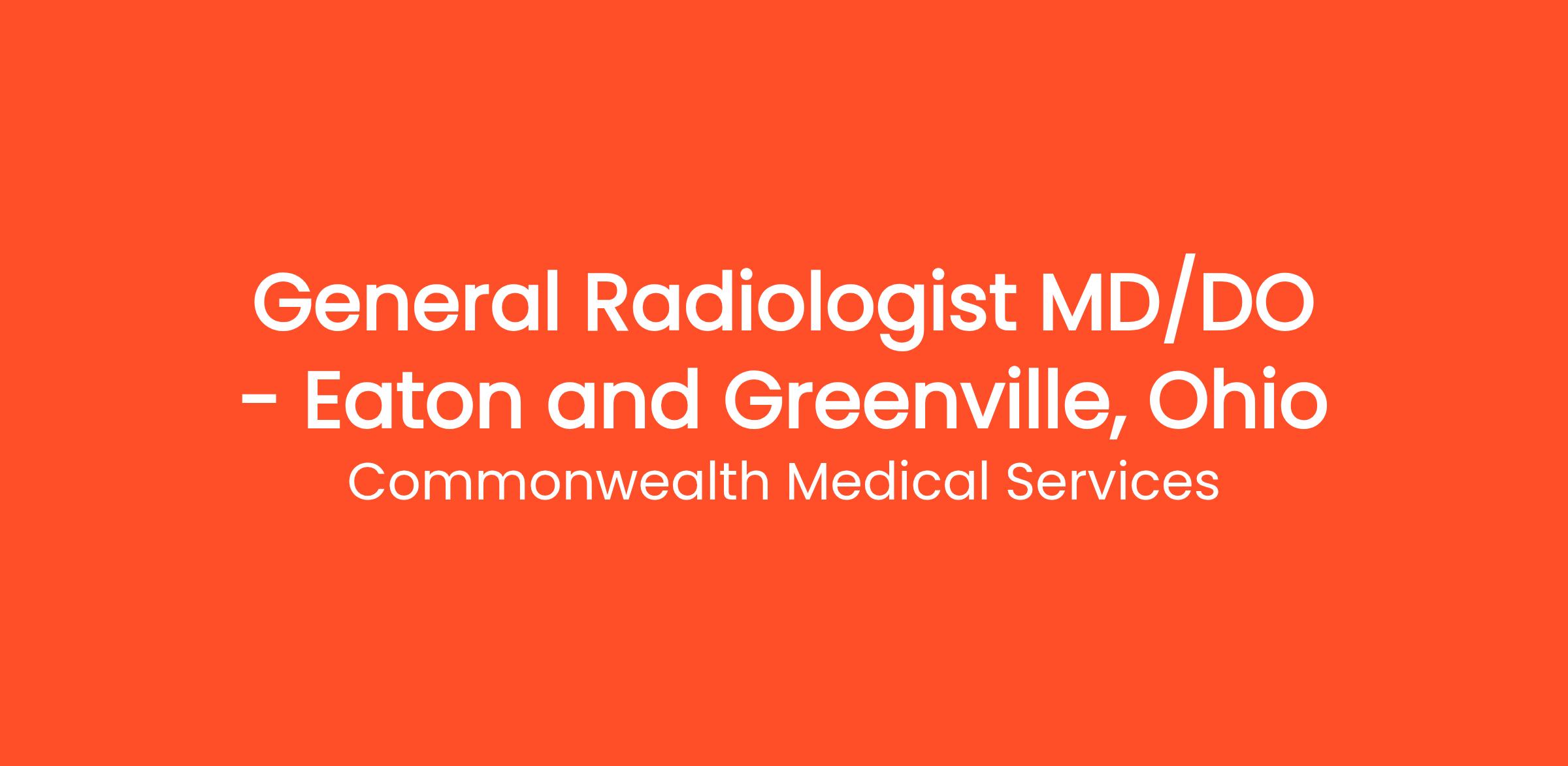 General Radiologist MD/DO - Eaton and Greenville, Ohio
