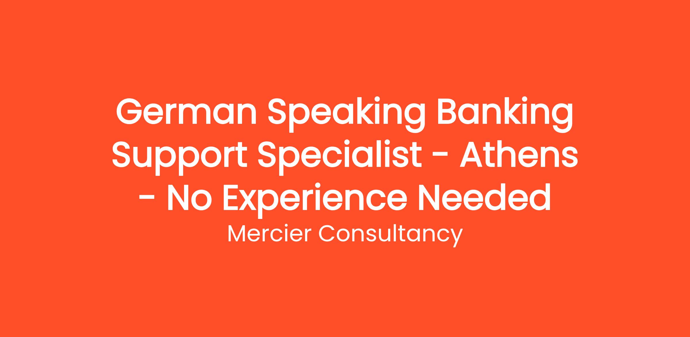 Mercier Consultancy is excited to offer an opportunity for a German Speaking Banking Support Specialist in our Athens office, with no prior experience required! This position is perfect for those eager to begin their careers in banking support while utilizing their German language skills. As a key team member, you will assist German-speaking clients with their banking inquiries, ensuring they receive the highest level of service and support.