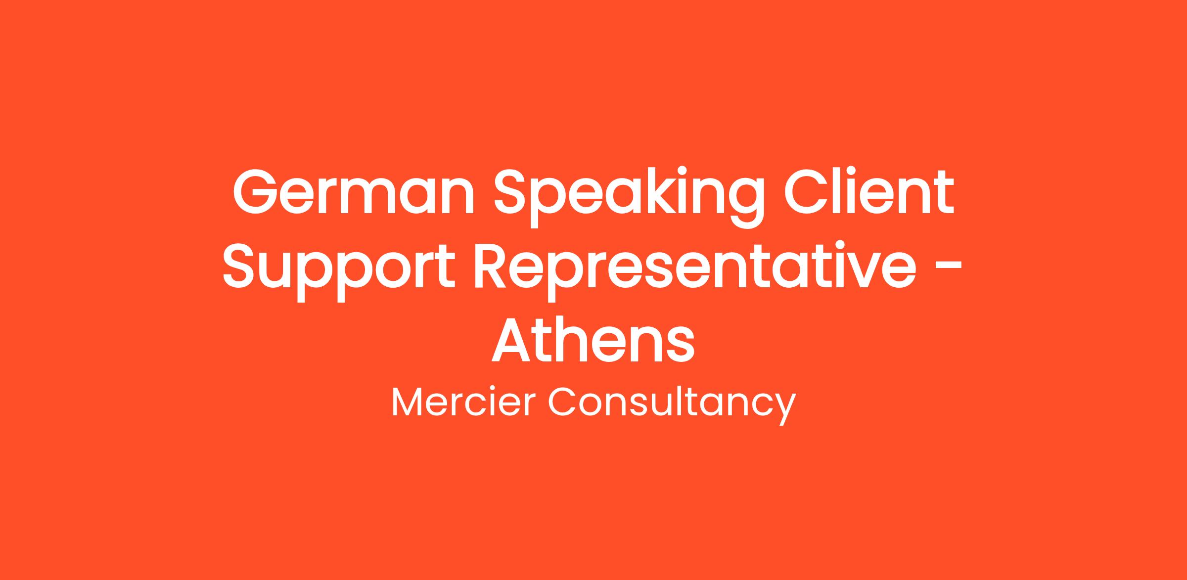 Join Mercier Consultancy as a German Speaking Client Support Representative in our Athens office! In this dynamic role, you will be the first point of contact for our German-speaking clients, providing exceptional support and ensuring their needs are met with efficiency and professionalism. Your fluency in German will be essential in fostering strong relationships with clients and enhancing their overall experience with our services.
