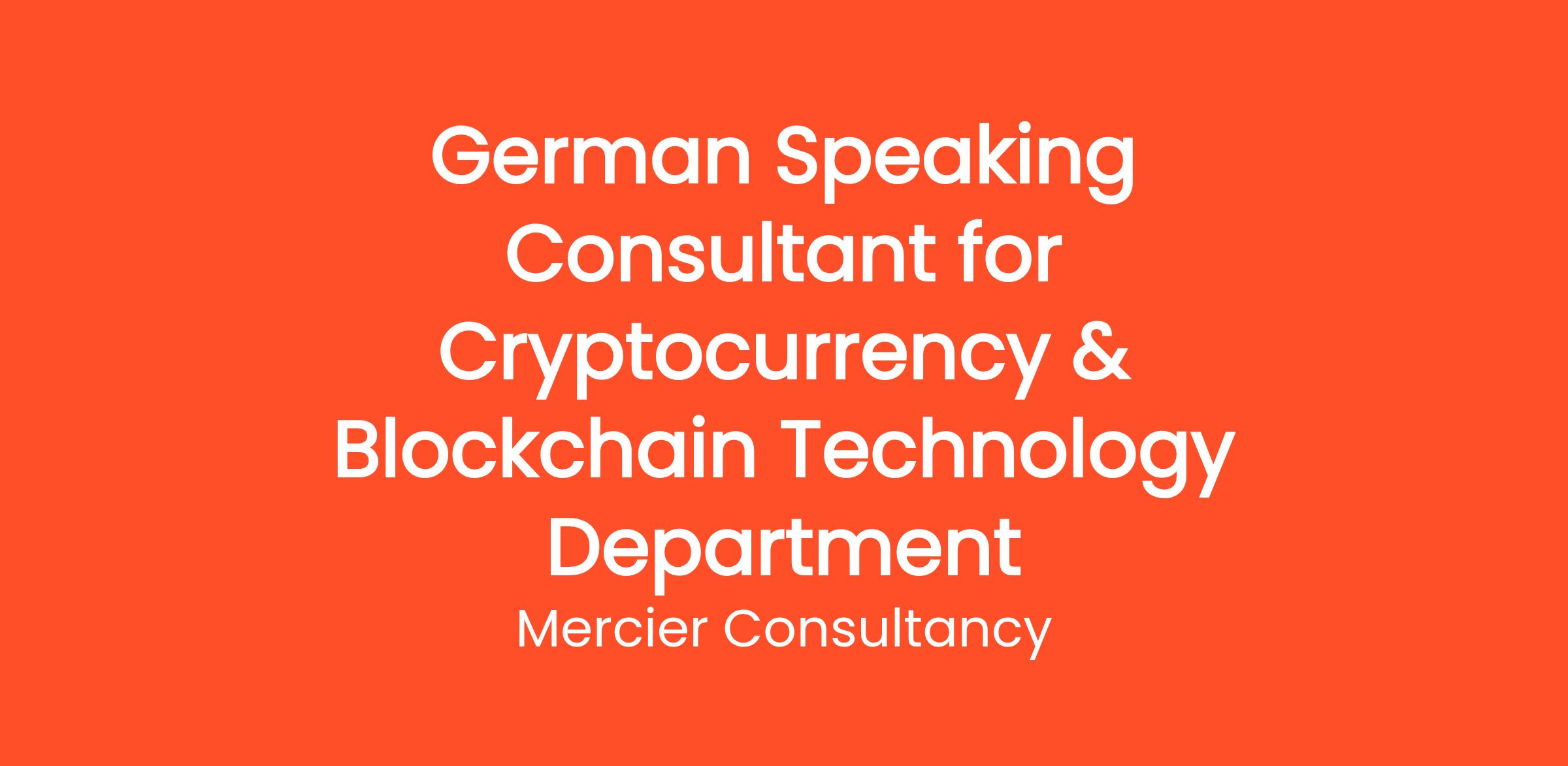 Mercier Consultancy is thrilled to offer an opportunity for a German Speaking Consultant in our Cryptocurrency & Blockchain Technology Department for one of our clients. In this pivotal Entry Level role, you will provide invaluable support and guidance to our German-speaking clients as they navigate the intricacies of cryptocurrency and blockchain technology. Your expertise will enable clients to understand and leverage our innovative solutions, ensuring they make informed decisions in this rapidly changing landscape.