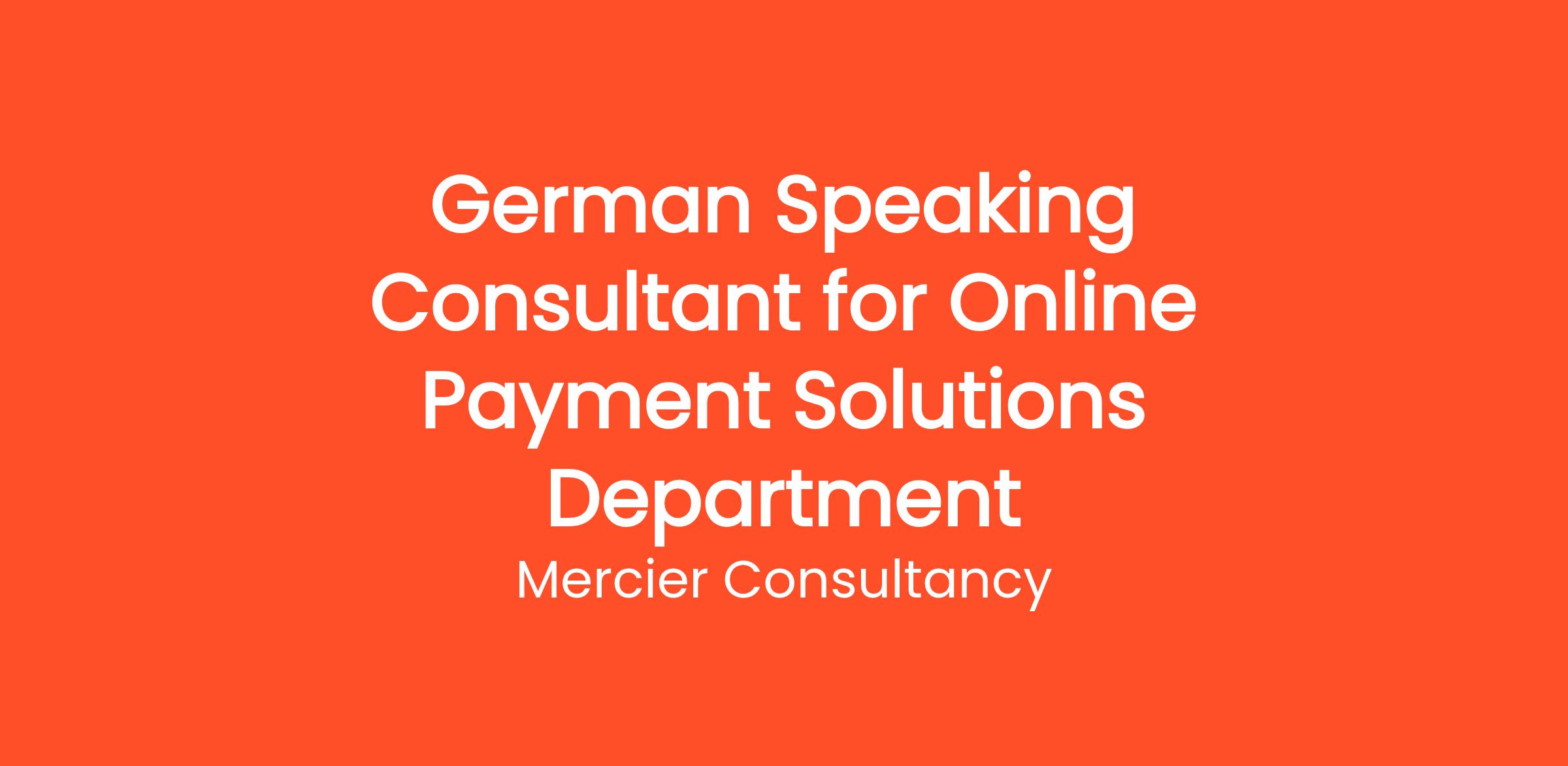 Mercier Consultancy is on the lookout for a dedicated German Speaking Consultant to join our Online Payment Solutions Department. In this pivotal role, you will assist our German-speaking clients in optimizing their online payment systems, ensuring they have the tools and guidance necessary for seamless transactions and enhanced customer experience.