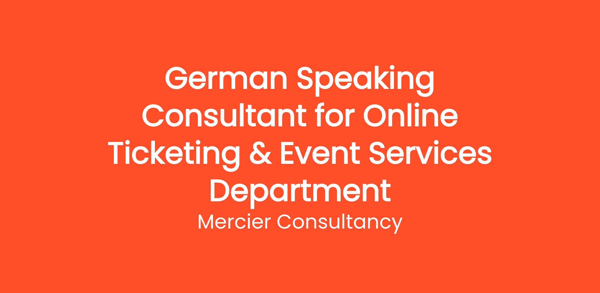 Mercier Consultancy is pleased to offer an exciting opportunity for a German Speaking Consultant in our Online Ticketing & Event Services Department for one of our clients. In this vital Entry Level role, you will assist German-speaking clients in effectively managing their events and streamlining their ticketing processes. Your expertise will help ensure that clients achieve their attendance objectives and provide memorable experiences for their audiences.