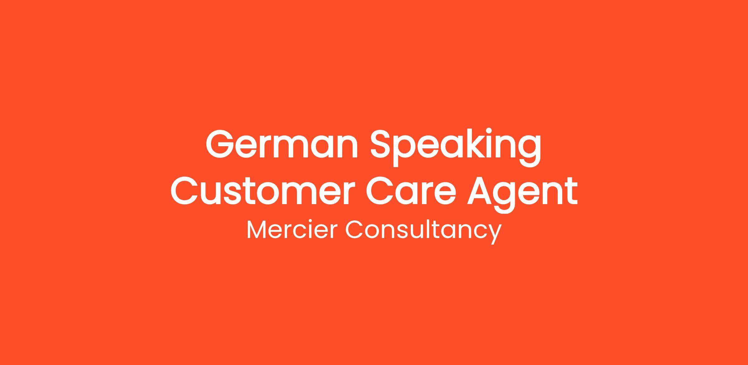 Mercier Consultancy is seeking a German Speaking Customer Care Agent to enhance our dedicated team! In this vital position, you will provide outstanding support to our German-speaking customers, ensuring their needs are met with efficiency and professionalism.