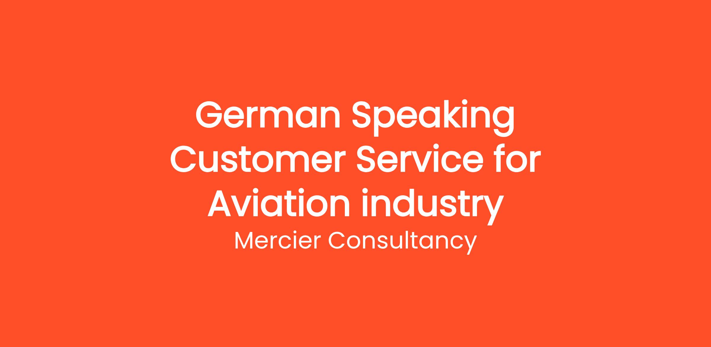 Mercier Consultancy is seeking a dedicated German Speaking Customer Service Representative to join our Client’s team in the Aviation industry. In this pivotal role, you will provide exceptional support to our German-speaking customers, assisting them with inquiries related to aviation services, bookings, and travel logistics.