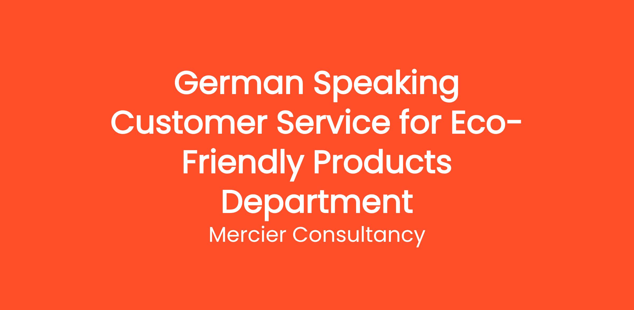 Mercier Consultancy is excited to announce an opening for a German Speaking Customer Service Representative to join our Eco-Friendly Products Department for one of our clients. In this Entry Level role, you will be responsible for providing outstanding support to our German-speaking customers, assisting them with inquiries related to our range of eco-friendly products and initiatives.