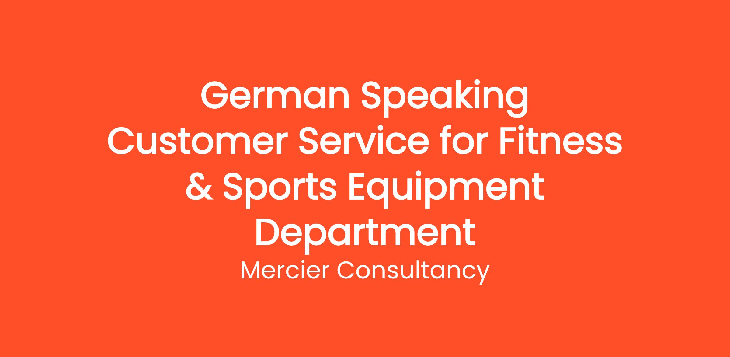 Mercier Consultancy is seeking a motivated German Speaking Customer Service Representative for our Fitness & Sports Equipment Department for one of our clients. In this dynamic Entry Level role, you will provide outstanding support to our German-speaking customers, assisting them with inquiries related to our range of fitness and sports products.