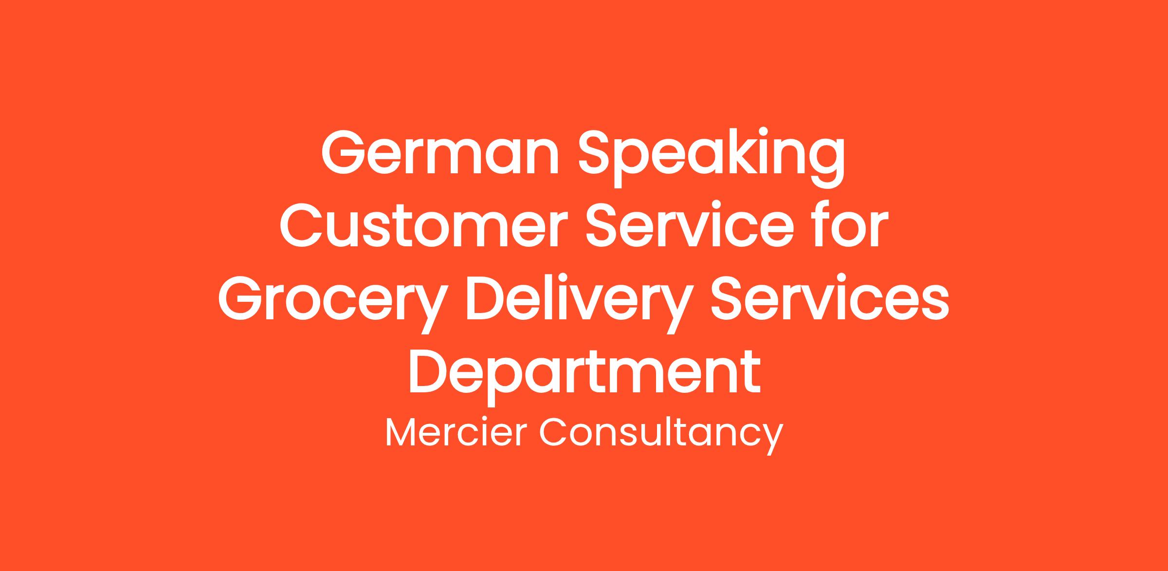Mercier Consultancy is looking for a dedicated German Speaking Customer Service Representative to join our Grocery Delivery Services Department for one of our clients. In this vital Entry Level role, you will provide excellent support to our German-speaking customers, helping them navigate our grocery delivery platform and ensuring a smooth shopping experience.
