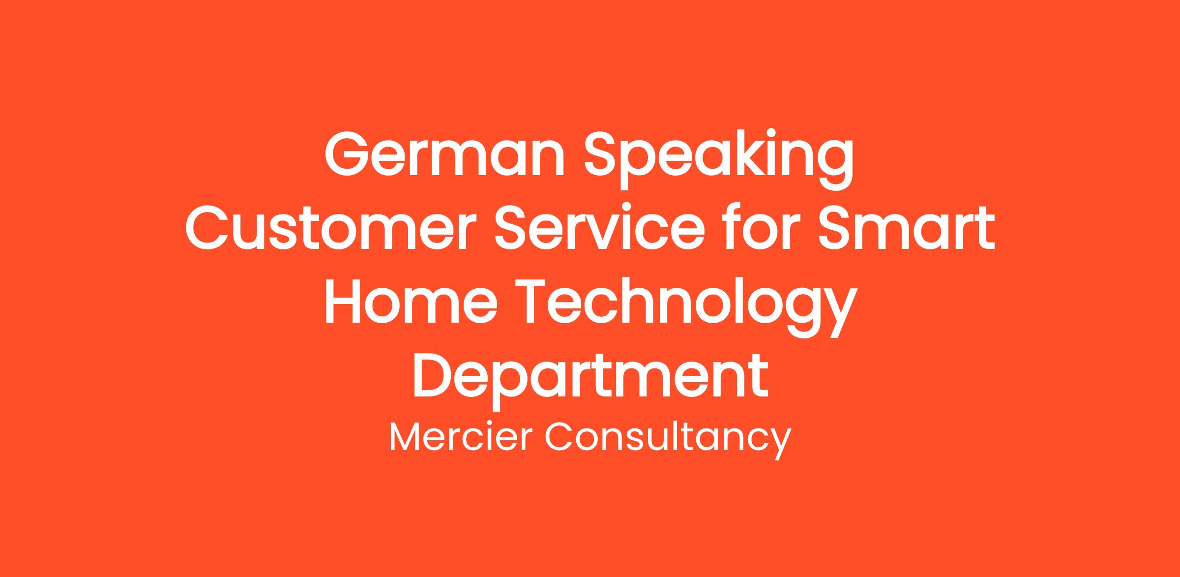 Mercier Consultancy is looking for a proactive German Speaking Customer Service Representative to join our Smart Home Technology Department for one of our clients. In this dynamic Entry Level role, you will provide exceptional support to our German-speaking customers, helping them understand and make the most of our innovative smart home products and solutions.