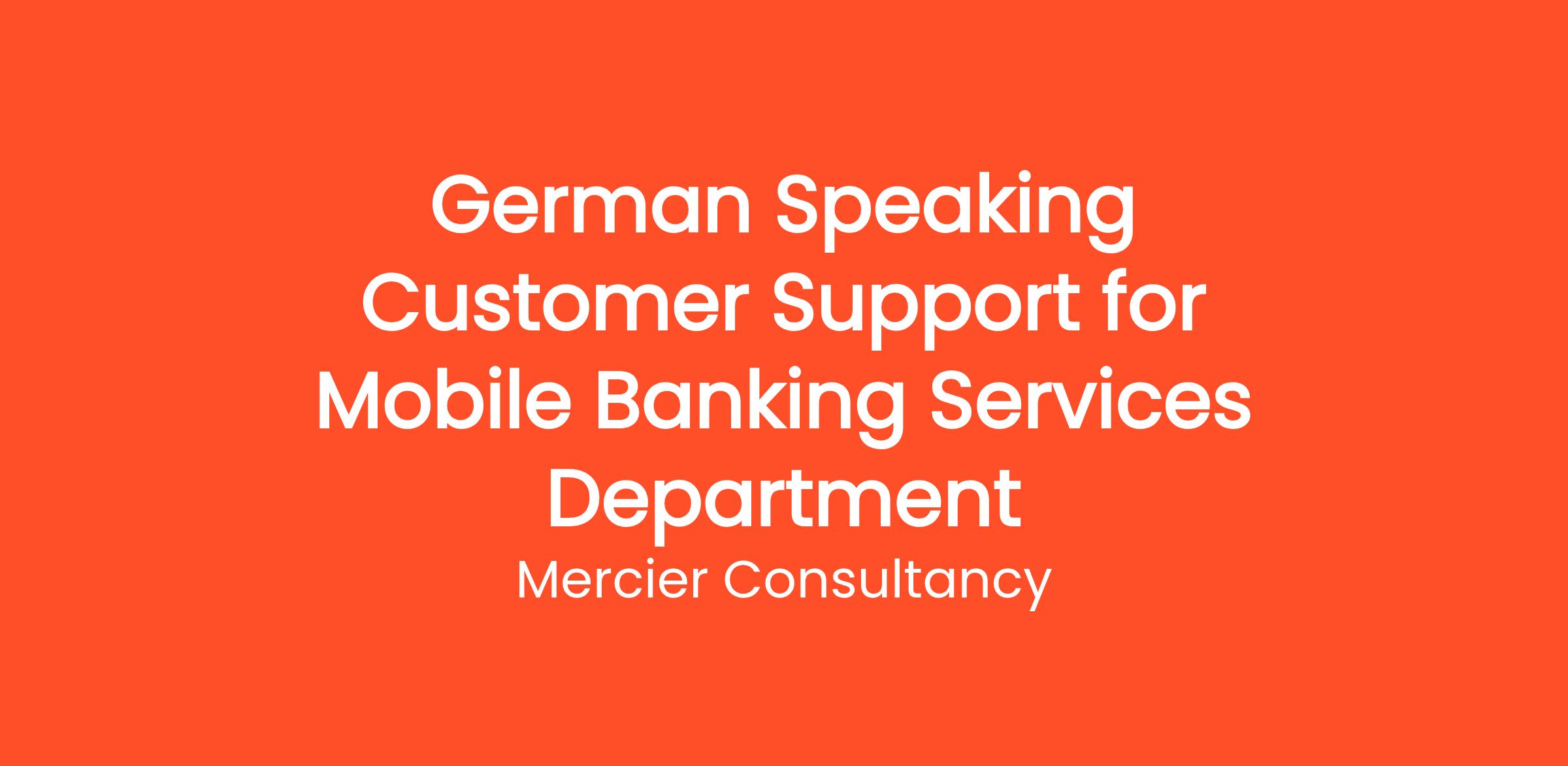 Mercier Consultancy is seeking a dedicated German Speaking Customer Support Representative to join our Mobile Banking Services Department for one of our clients! In this pivotal Entry Level role, you will provide exceptional support to our German-speaking clients as they navigate our mobile banking platform. Your proficiency in the German language will be crucial in ensuring clear communication and outstanding service.