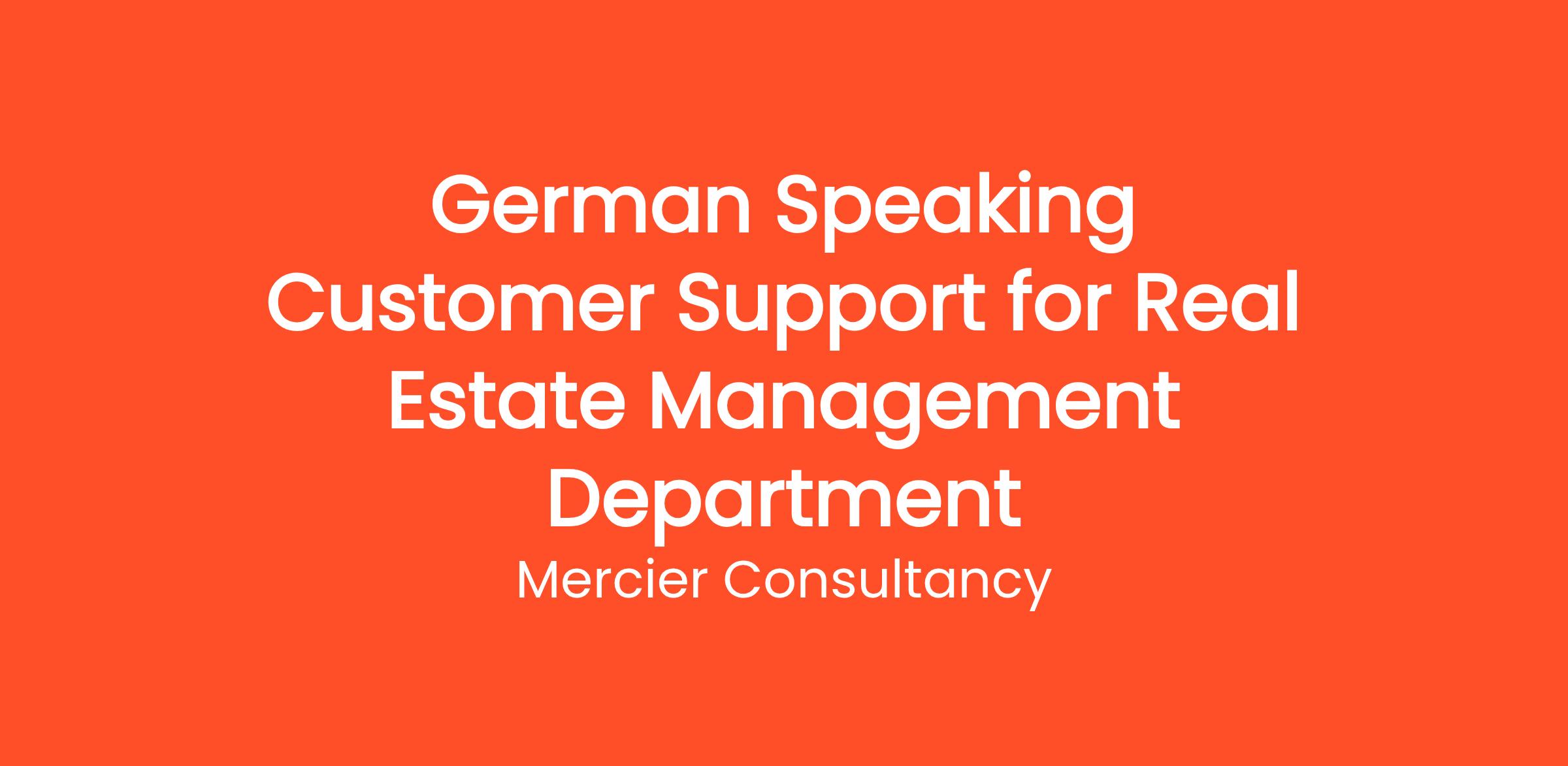 Mercier Consultancy is excited to announce an opening for a German Speaking Customer Support Representative in our Real Estate Management Department for one of our clients! In this Entry Level role, you will be the first point of contact for our German-speaking clients, providing exceptional support and assistance with their real estate inquiries and needs. Your ability to communicate fluently in German will be essential in delivering outstanding customer service.