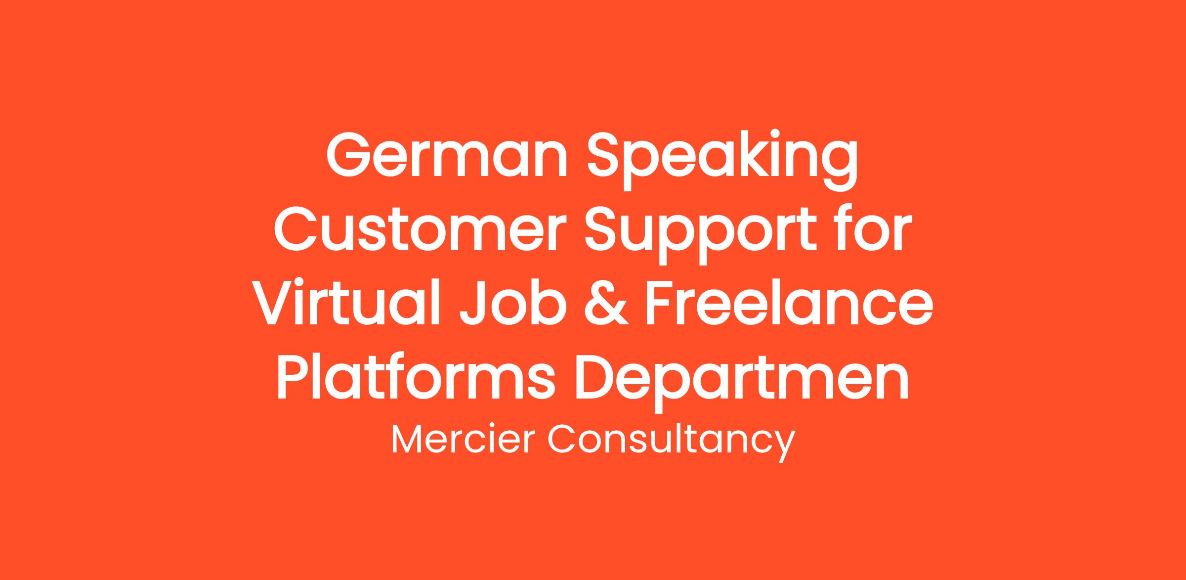 Mercier Consultancy is excited to announce a fantastic opportunity for a German Speaking Customer Support Representative in our Virtual Job & Freelance Platforms Department for one of our clients! In this important Entry Level role, you will serve as the primary contact for our German-speaking clients, providing them with exceptional support and guidance as they navigate our platforms. Your fluency in German will enable you to build strong relationships with clients and ensure that they have a seamless experience while utilizing our services.