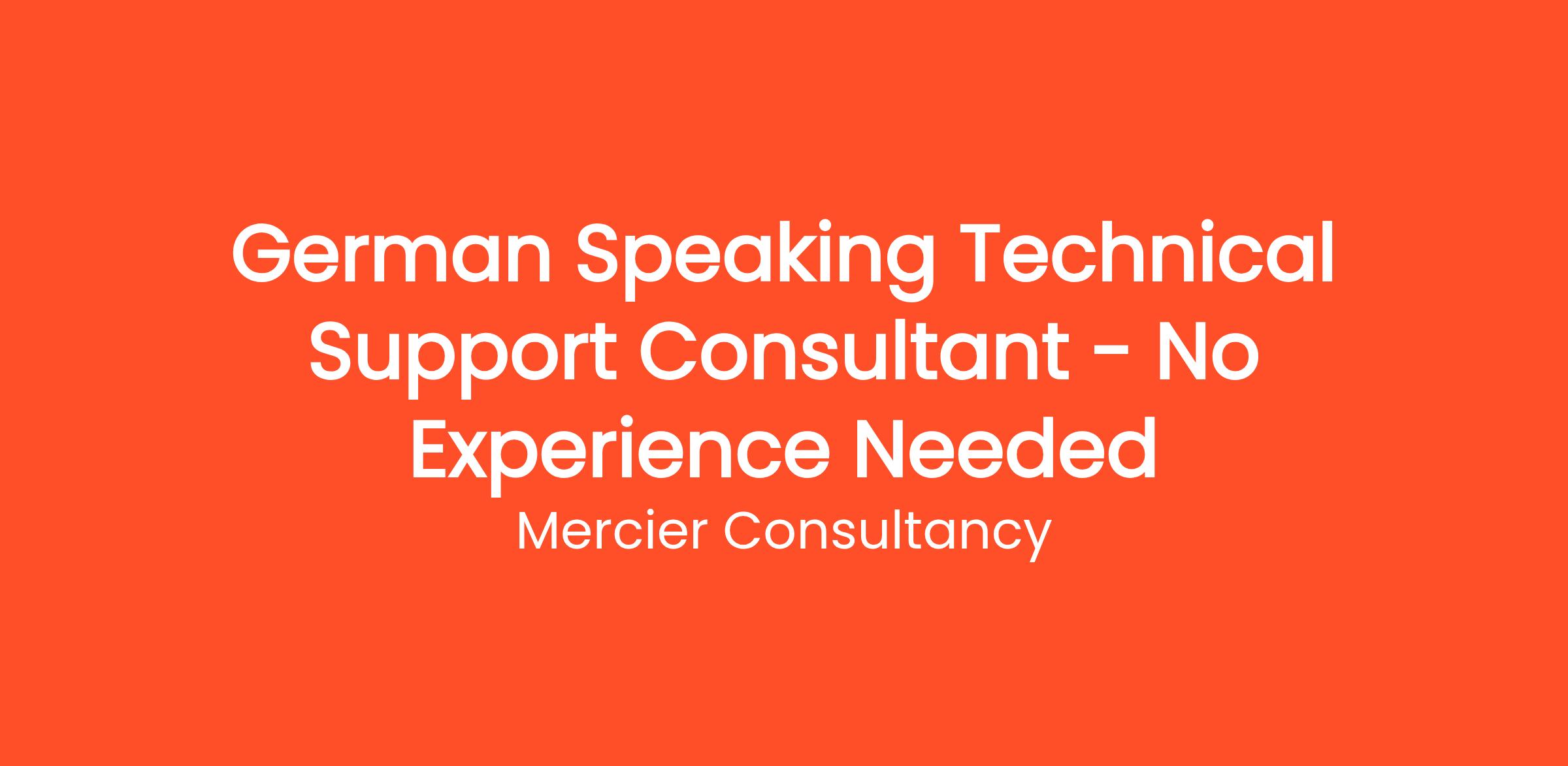 Mercier Consultancy is thrilled to offer an exciting opportunity for a German Speaking Technical Support Consultant, with no prior experience required! We are looking for enthusiastic individuals to join our team and provide outstanding support to our German-speaking clients. In this role, you will assist clients with technical inquiries related to our products and services, ensuring they have a seamless experience.