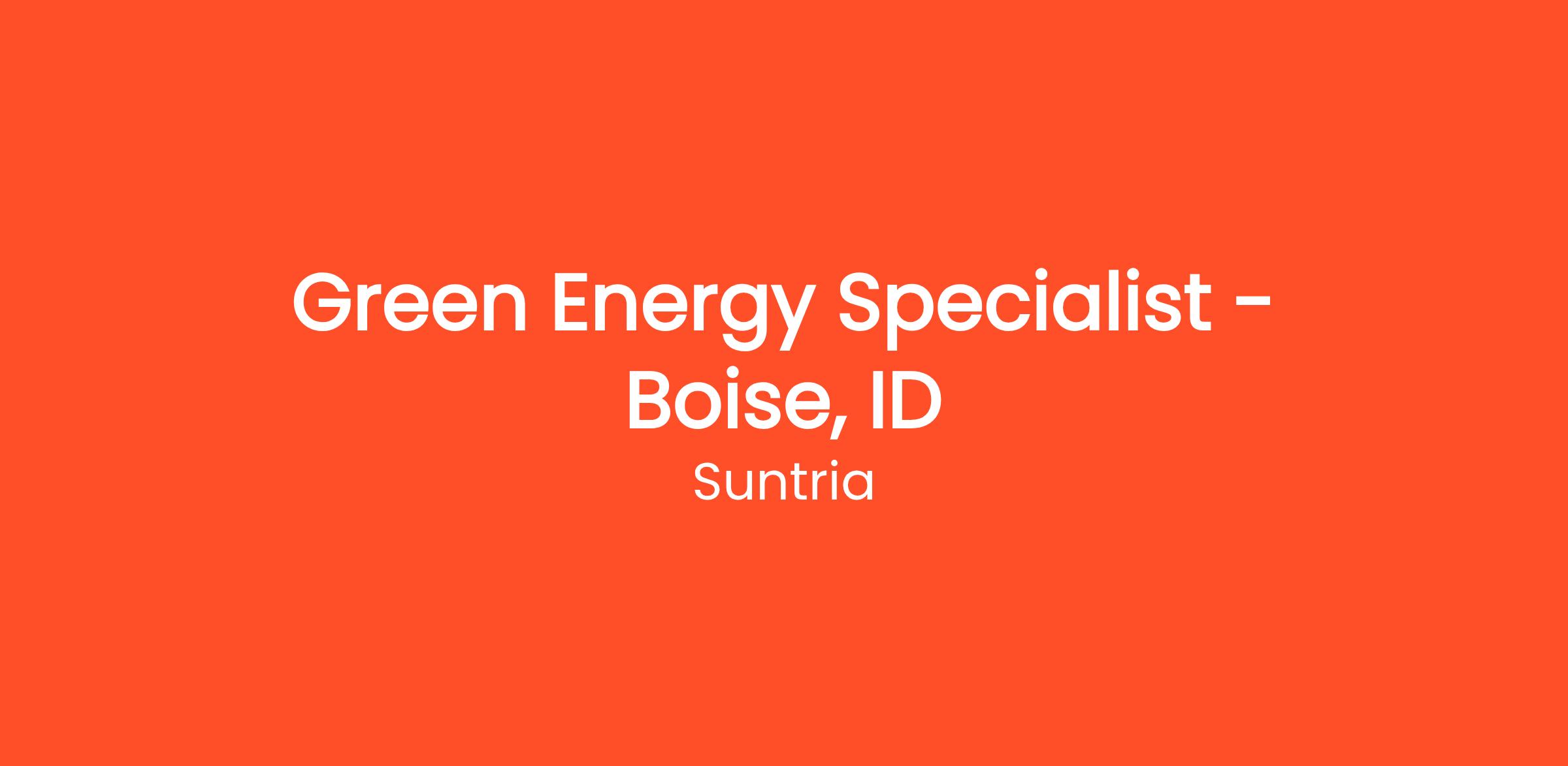 Green Energy Specialist - Boise, ID