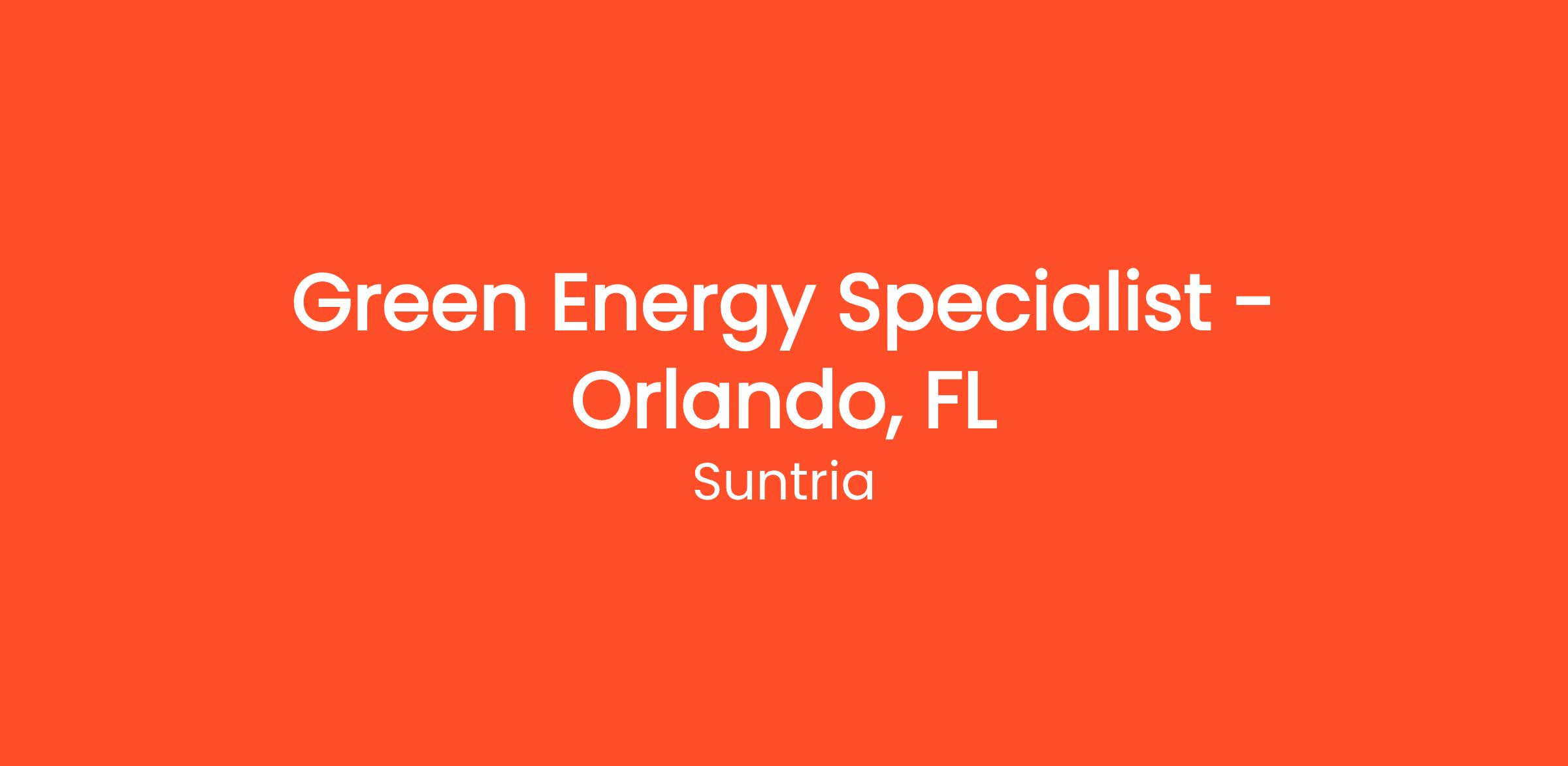 Green Energy Specialist - Orlando, FL