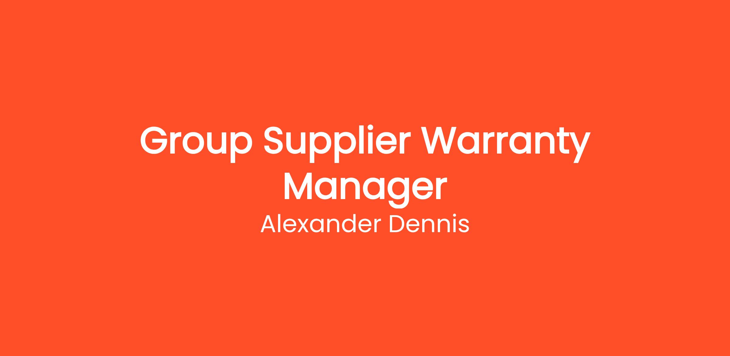 Job Title: Group Supplier Warranty Claim Manager