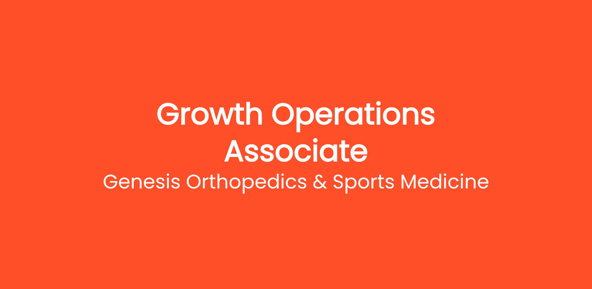 Genesis Orthopedics & Sports Medicine is seeking a highly motivated, detail-oriented Growth Operations Associate to support our expanding operations and lead growth-focused initiatives across the organization. This role is ideal for a dynamic, resourceful individual who thrives in a fast-paced environment, enjoys cross-functional collaboration, and is passionate about making a meaningful impact in healthcare delivery.