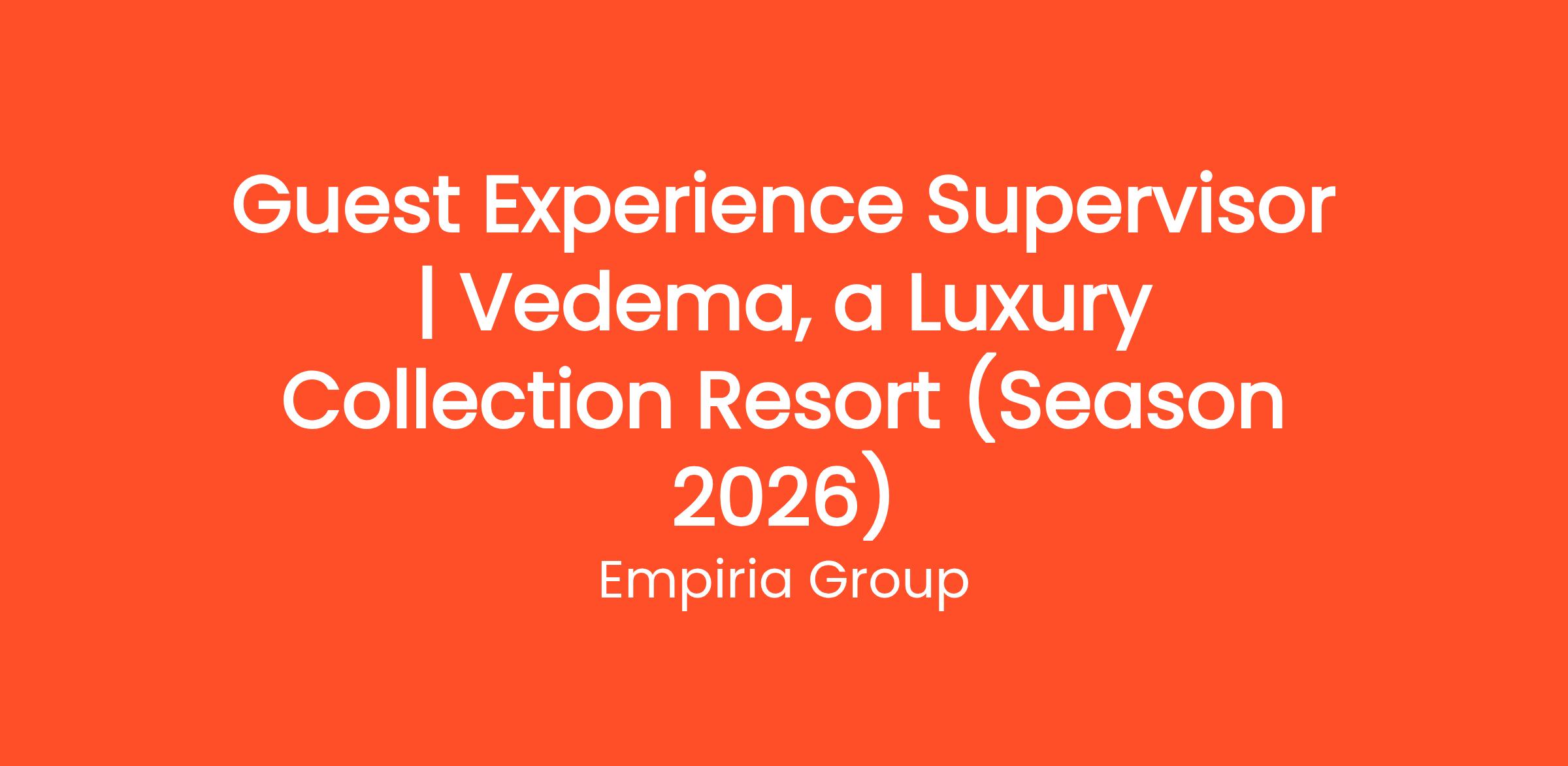 Guest Experience Supervisor | Vedema, a Luxury Collection Resort (Season 2026)