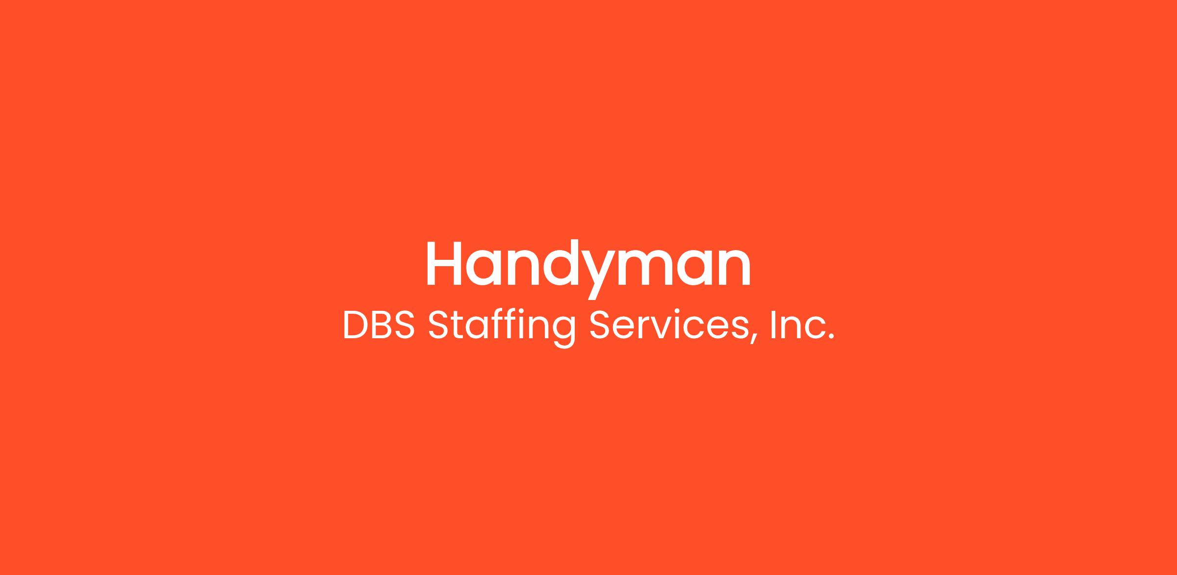 DBS Staffing Services, Inc. is looking for a reliable Handyman to join our team. We are a family-owned staffing company that connects skilled people with clients who need their help.