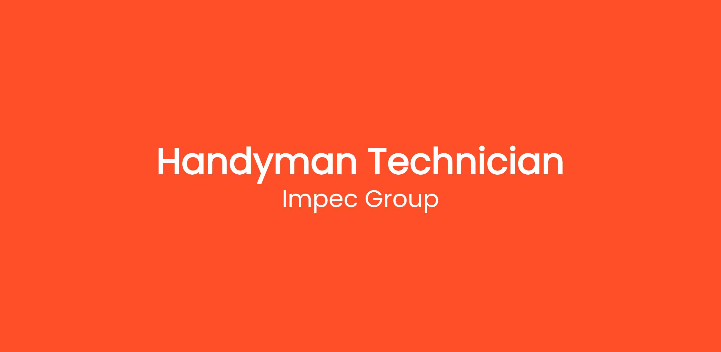 Impec Group focuses on the human touch – the experiences, health, safety, and wellbeing as we interact with each other in the workplaces. We exist to support workplace efficiencies. Our mission is people’s success within the workplace industry. Our client is looking for a Handyman Technician to join the team and play a key role in maintaining and upkeeping their facilities. The ideal candidate will be highly service-oriented, with a focus on ensuring a clean, safe, and well-maintained work environment.