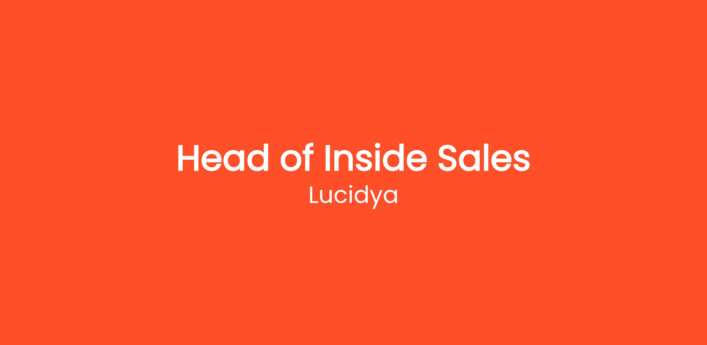 Lucidya is seeking an experienced Head of Inside Sales to build, lead, and scale its Inside Sales function from the ground up. This role owns the end-to-end Inside Sales engine across inbound and outbound motions, with full accountability for team structure, processes, performance, and revenue contribution. The Head of Inside Sales will operate as a senior commercial leader, working closely with Marketing, Enterprise Sales, and RevOps to establish a scalable, predictable revenue channel that supports Lucidya’s enterprise growth across MENA and beyond. This is a leadership role for someone who has built Inside Sales organizations before and understands how to turn structure, data, and people into consistent pipeline and revenue.