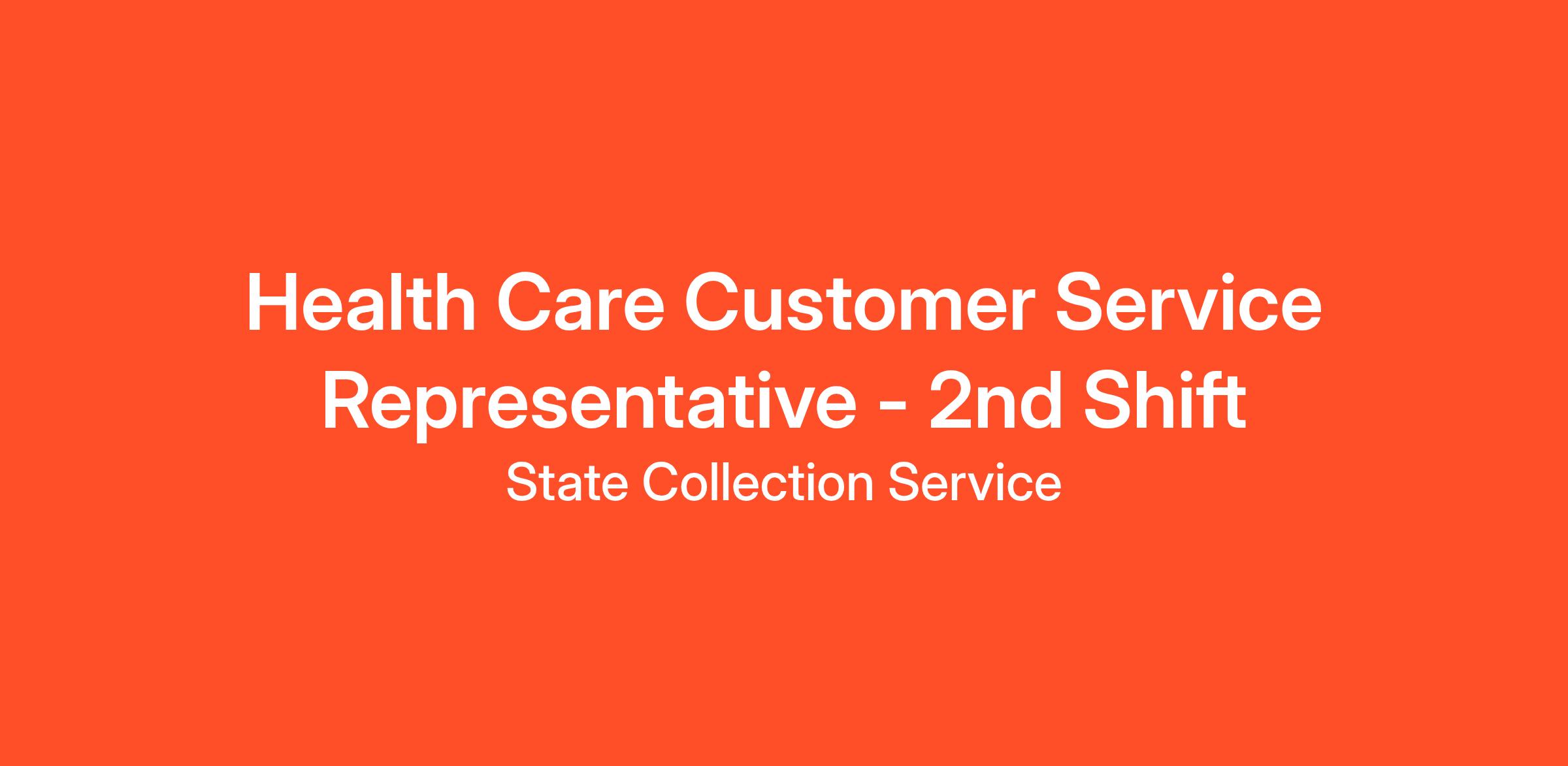 The GREAT STATE TEAM is seeking 2nd shift Remote Health Care Customer Service Representatives to join our fast-growing teams! As a Health Care Customer Service Representative, you will be handling inbound and outbound calls in a high-tech environment, resolving general questions regarding insurance, financial assistance, and processing payments. This position is challenging but rewarding, fast paced, and in a team environment.