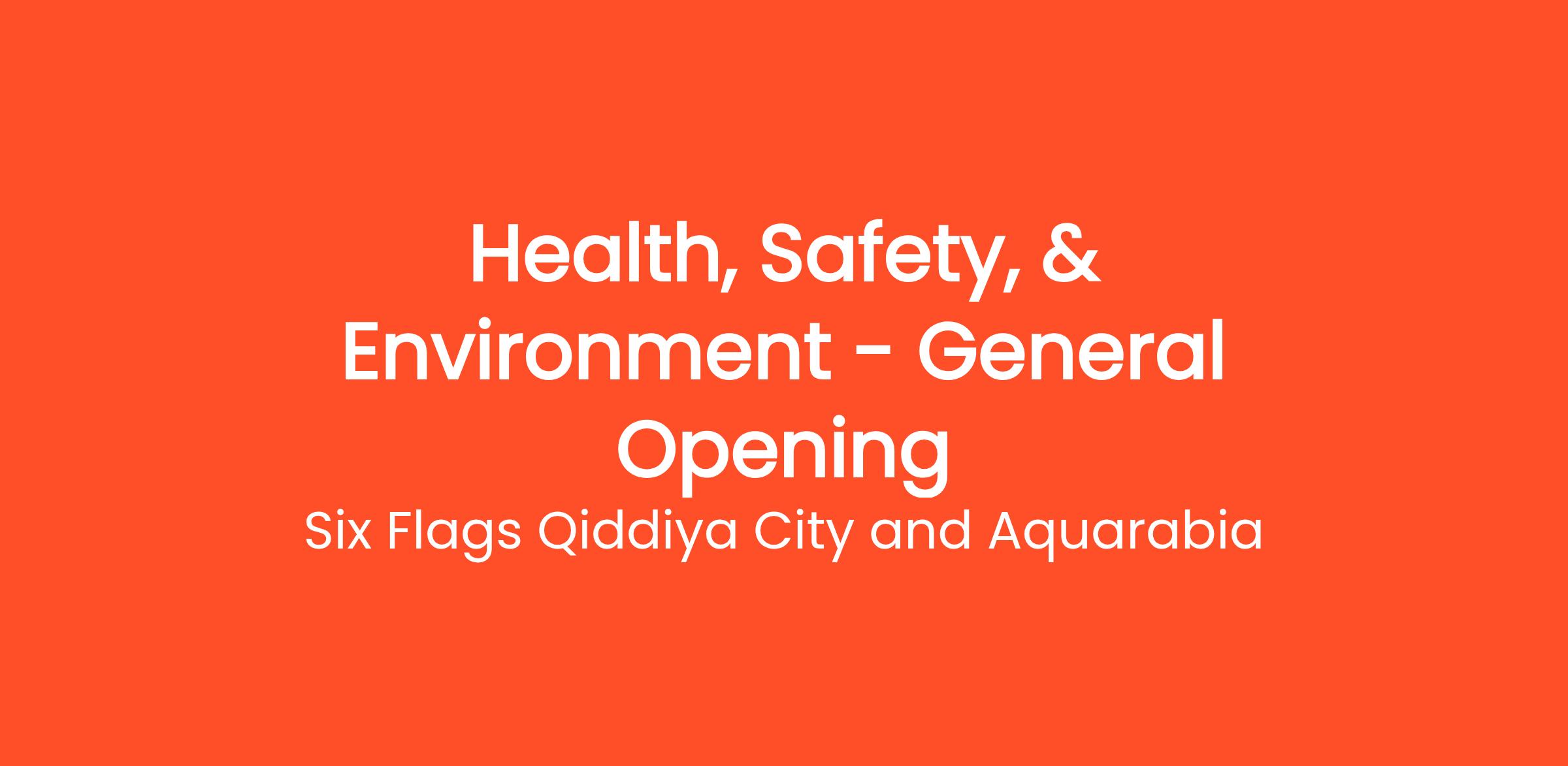 As part of our ongoing recruitment process, we are building a CV pool for future opportunities in the Health, Safety, and Environment (HSE) department at Six Flags Qiddiya City and Aquarabia.