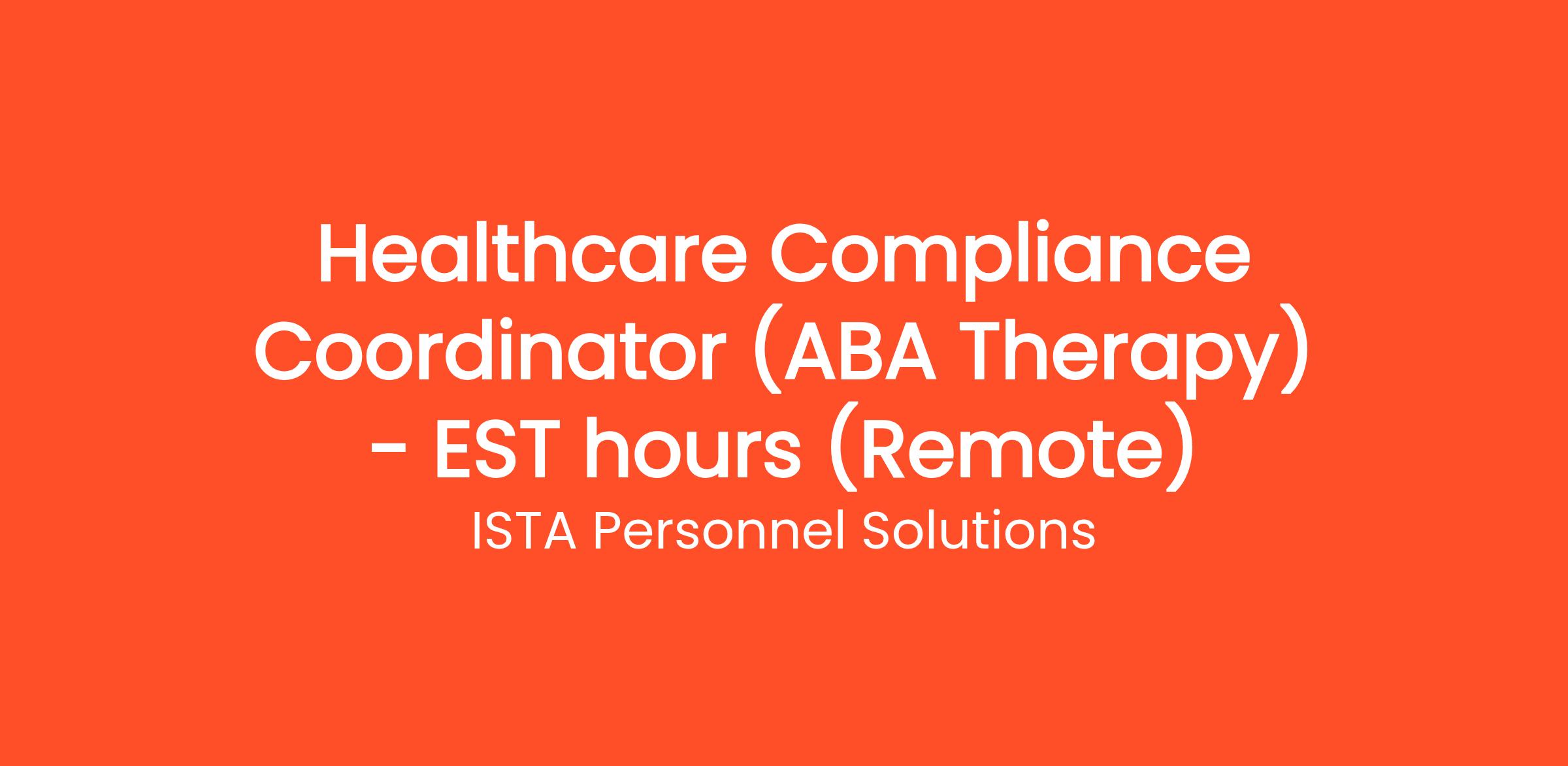 ISTA Personnel Solutions South Africa - we are a global BPO company, partnering with a USA-based client offering ABA Therapy, is seeking a diligent and personable Compliance Coordinator to ensure timely submission and verification of session notes by their Registered Behaviour Technicians (RBTs).