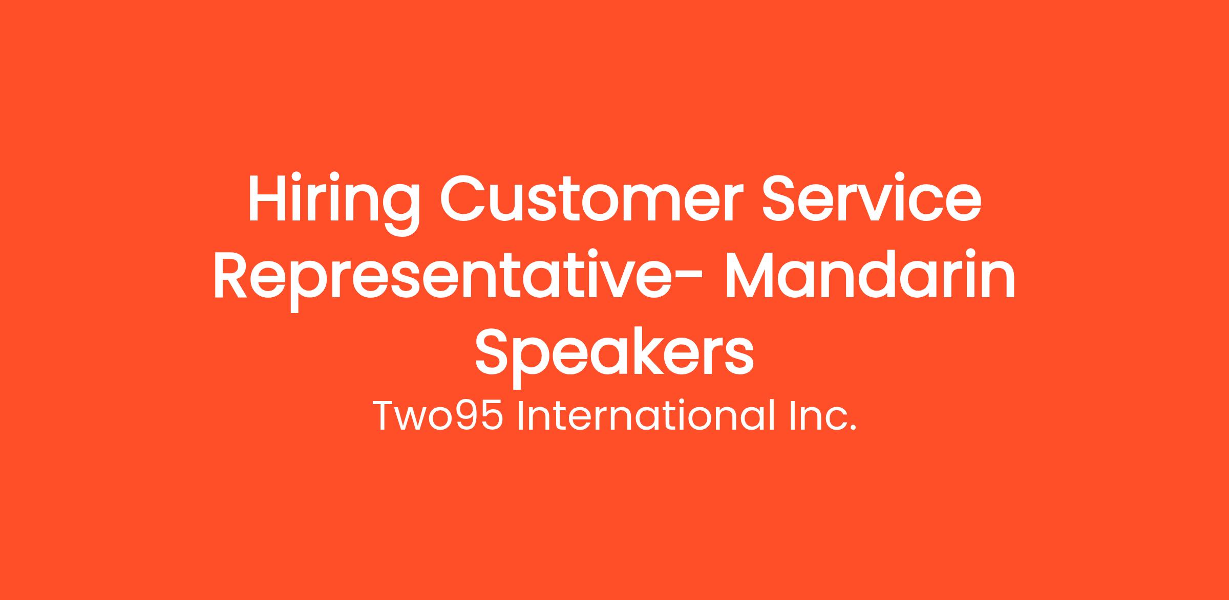Mandarin speakers with decent English communication skills needed.