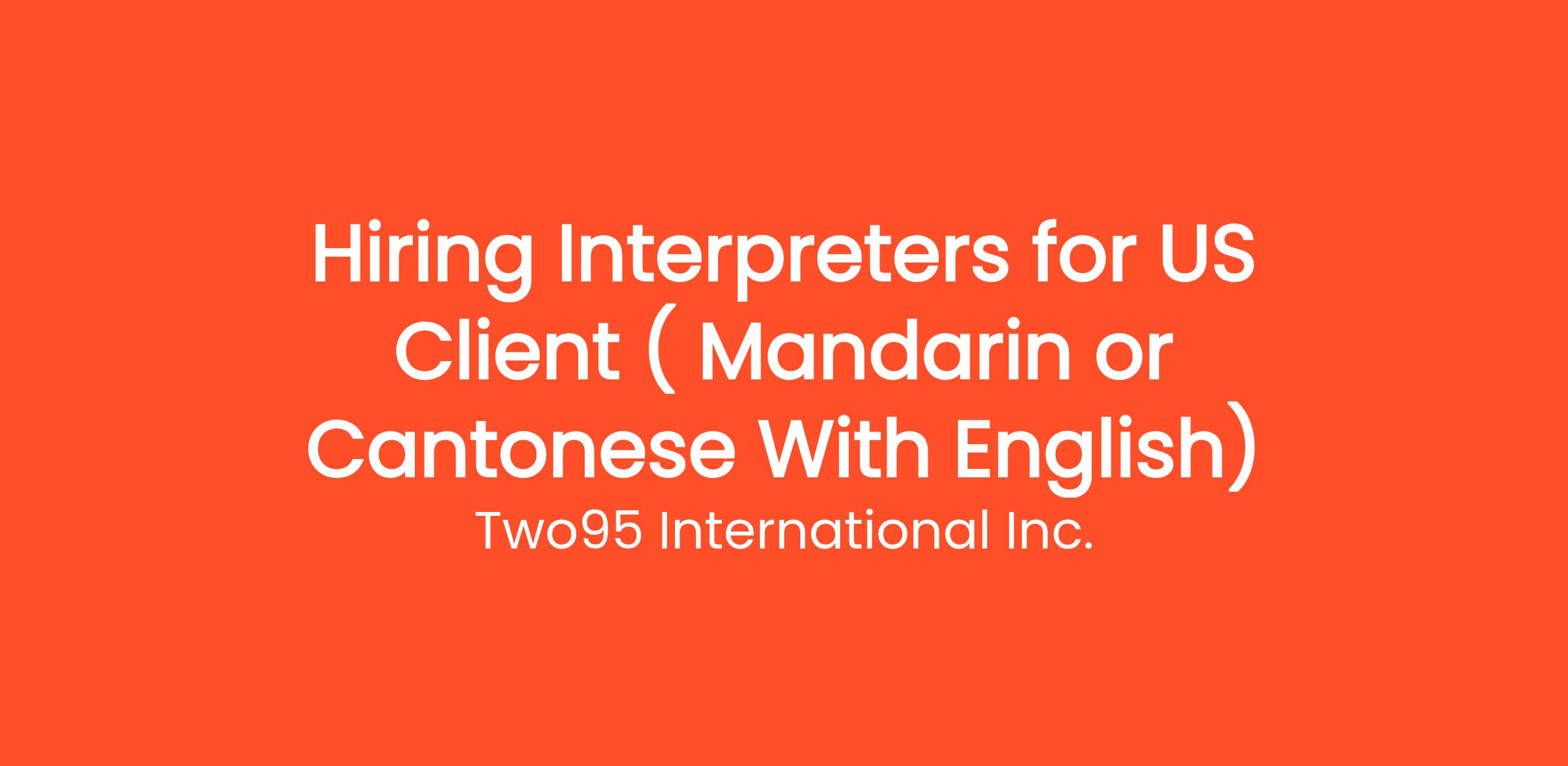 Hiring Mandarin or Catonese / English Interpreters ( Work from home, Only Night shift for One of the Top US Client)