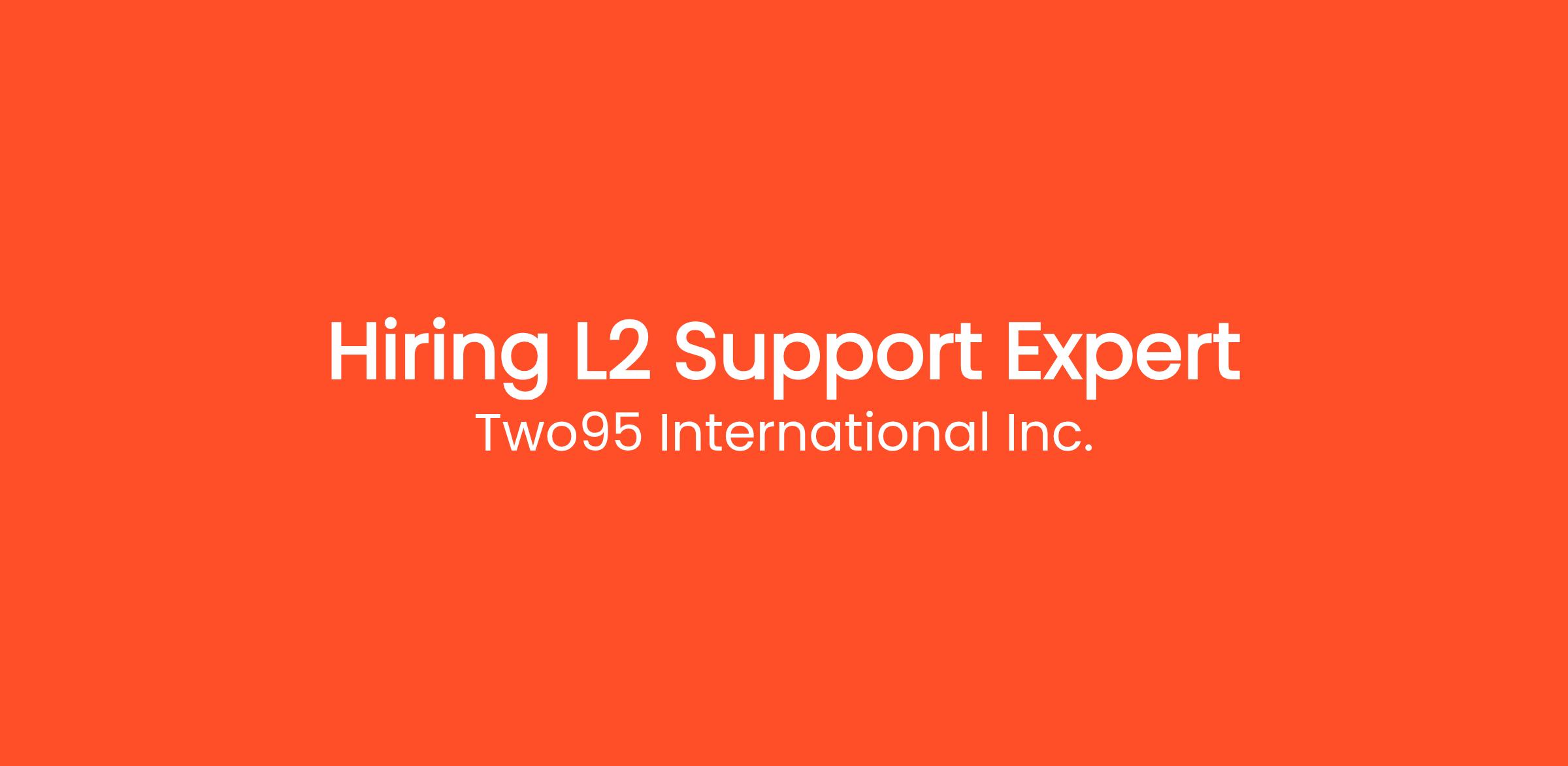 Hiring L2 Support Expert and L1 Support