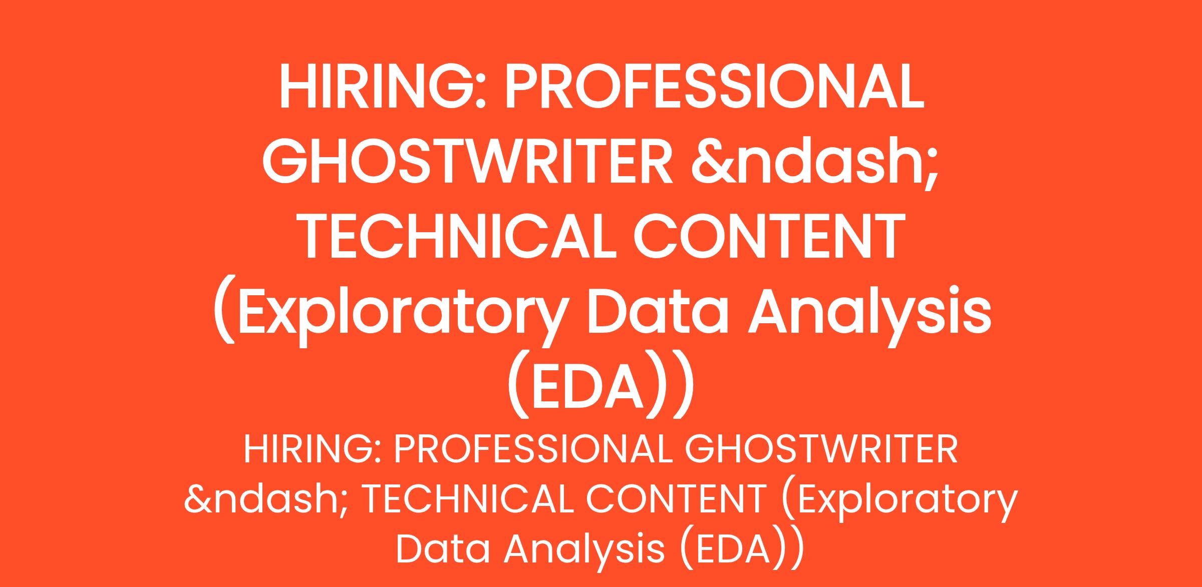 **HIRING: PROFESSIONAL GHOSTWRITER – TECHNICAL CONTENT (Exploratory Data Analysis (EDA))** We are seeking a highly reliable and experienced ghostwriter to transform structured outlines into a clear, authoritative, and engaging 13-page manuscript in MS Word format... (Budget: ₹3000 - ₹4000 INR, Jobs: Content Writing, Copywriting, Data Analysis, Data Science, Data Visualization, Ghostwriting, Python, Statistical Analysis, Technical Writing)