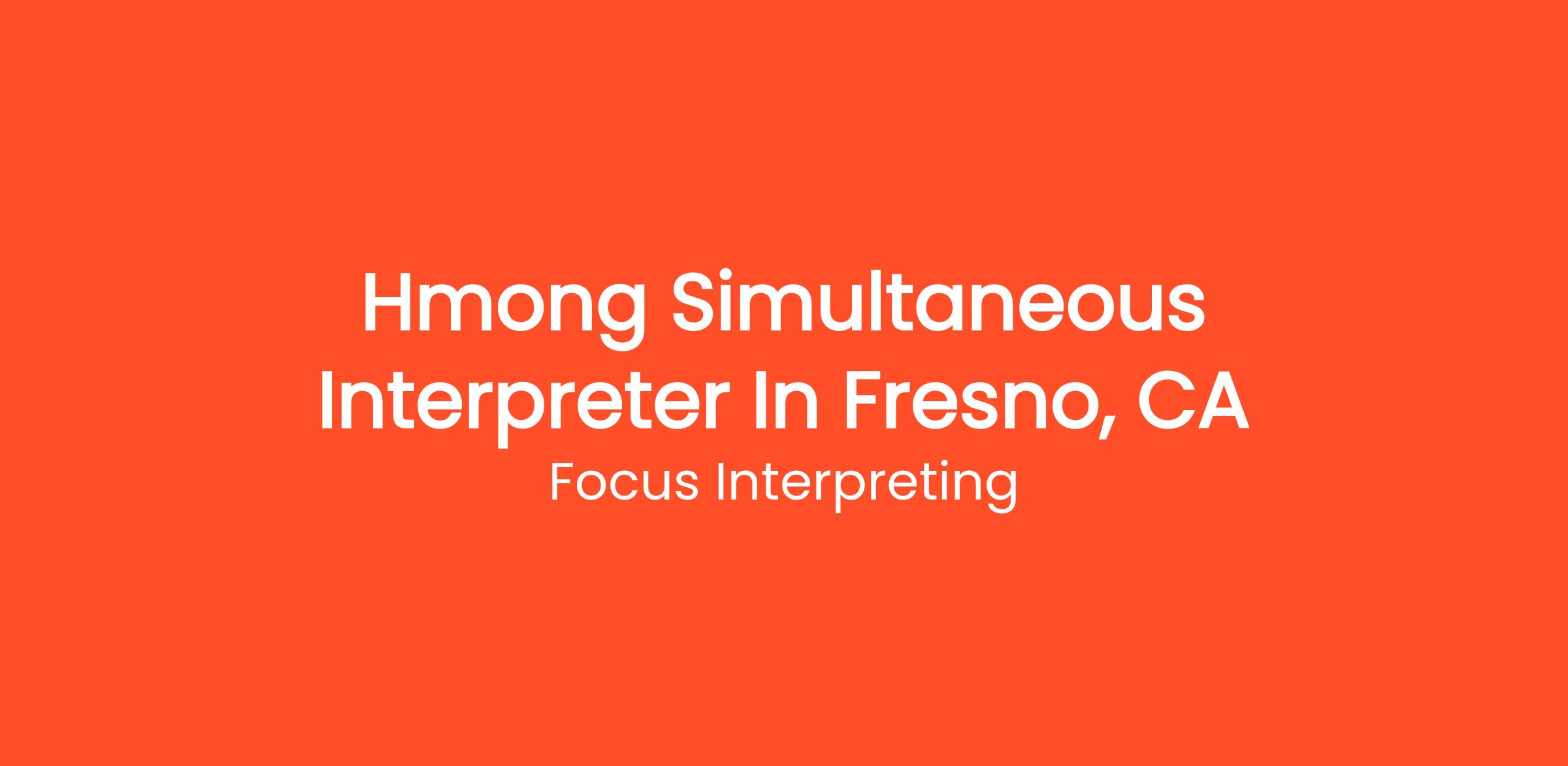 Focus Interpreting is seeking a professional Hmong Simultaneous Interpreter to join our team in Fresno, CA. In this role, you will provide real-time interpreting services, facilitating effective communication between English-speaking individuals and Hmong-speaking clients in various contexts, including healthcare, legal, and community services.