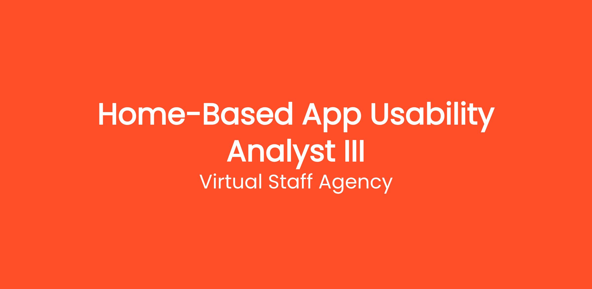 Thousands of people are already working from home as a Home-Based App Usability Analyst III with Virtual Staff Agency. Get paid to test websites and mobile apps from home and give your honest feedback. No tech experience required. This work-from-home opportunity requires no commute, no degree, and no special prior experience. Get started on your own terms — choose your own hours and work as many or as few hours per week as you need. Payouts are processed regularly with multiple withdrawal options so you always get paid on time.