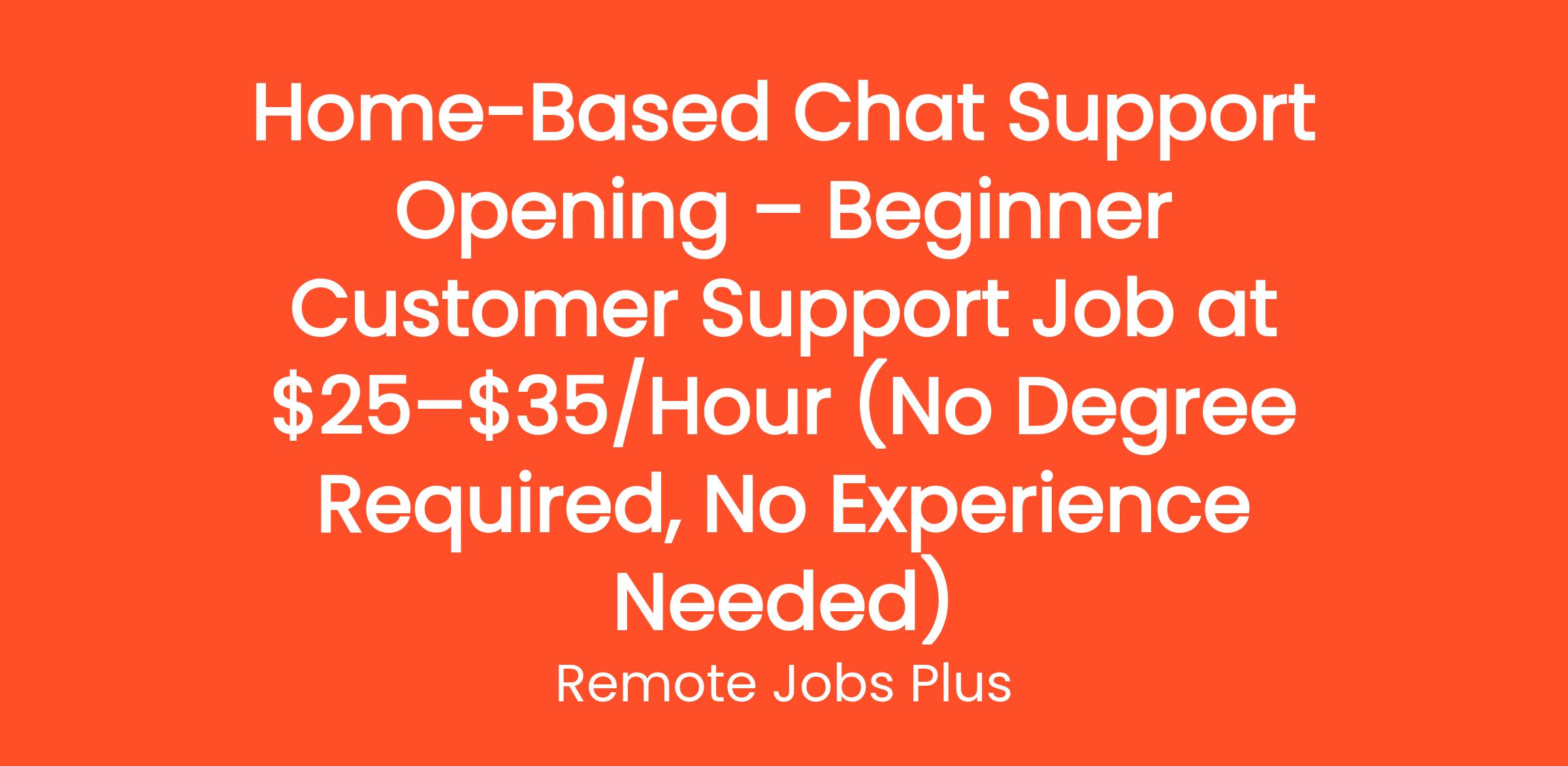 Home-Based Chat Support Opening – Beginner Customer Support Job at $25–$35/Hour (No Degree Required, No Experience Needed)