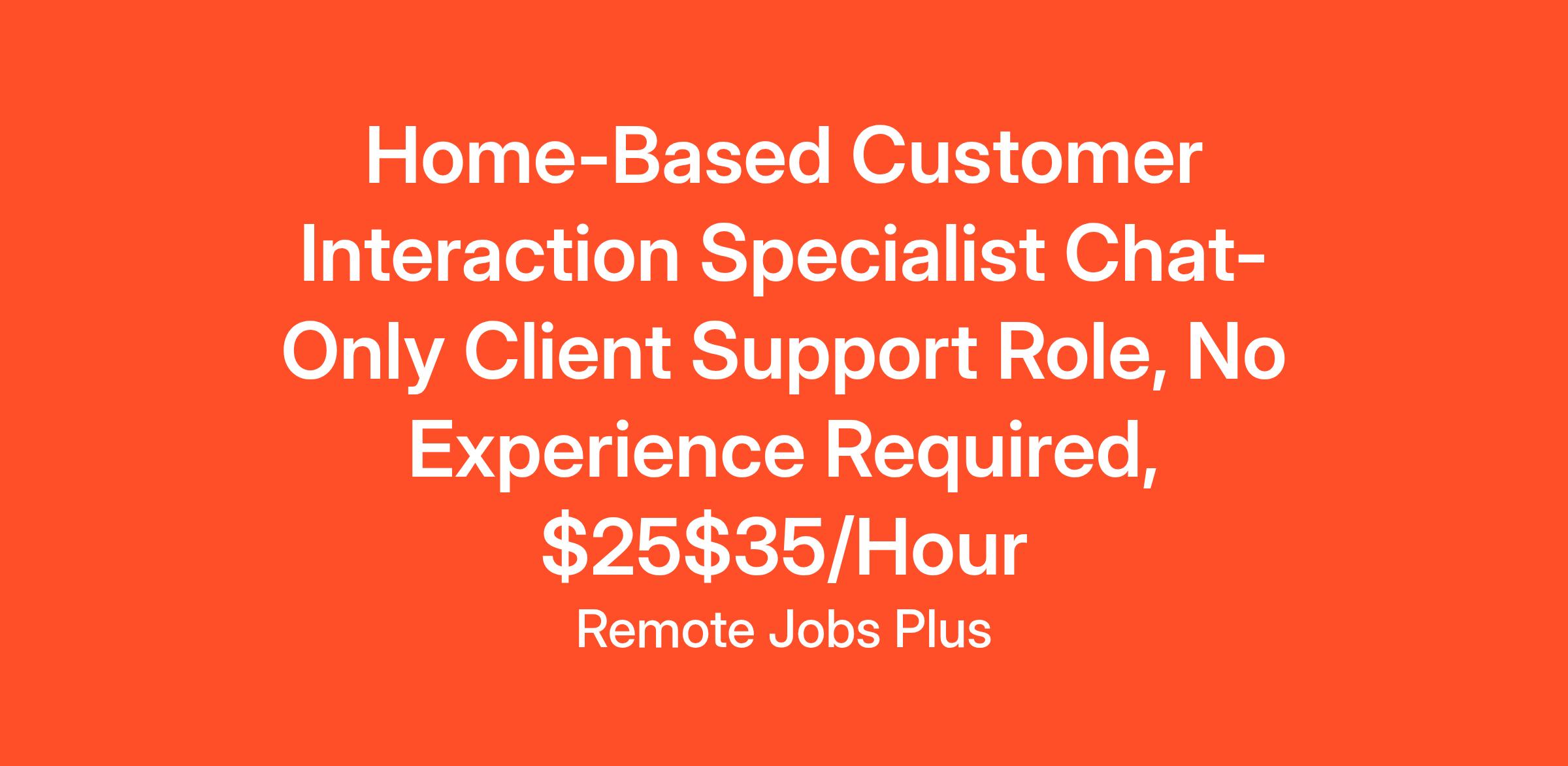 Home-Based Customer Interaction Specialist Chat-Only Client Support Role, No Experience Required, $25$35/Hour